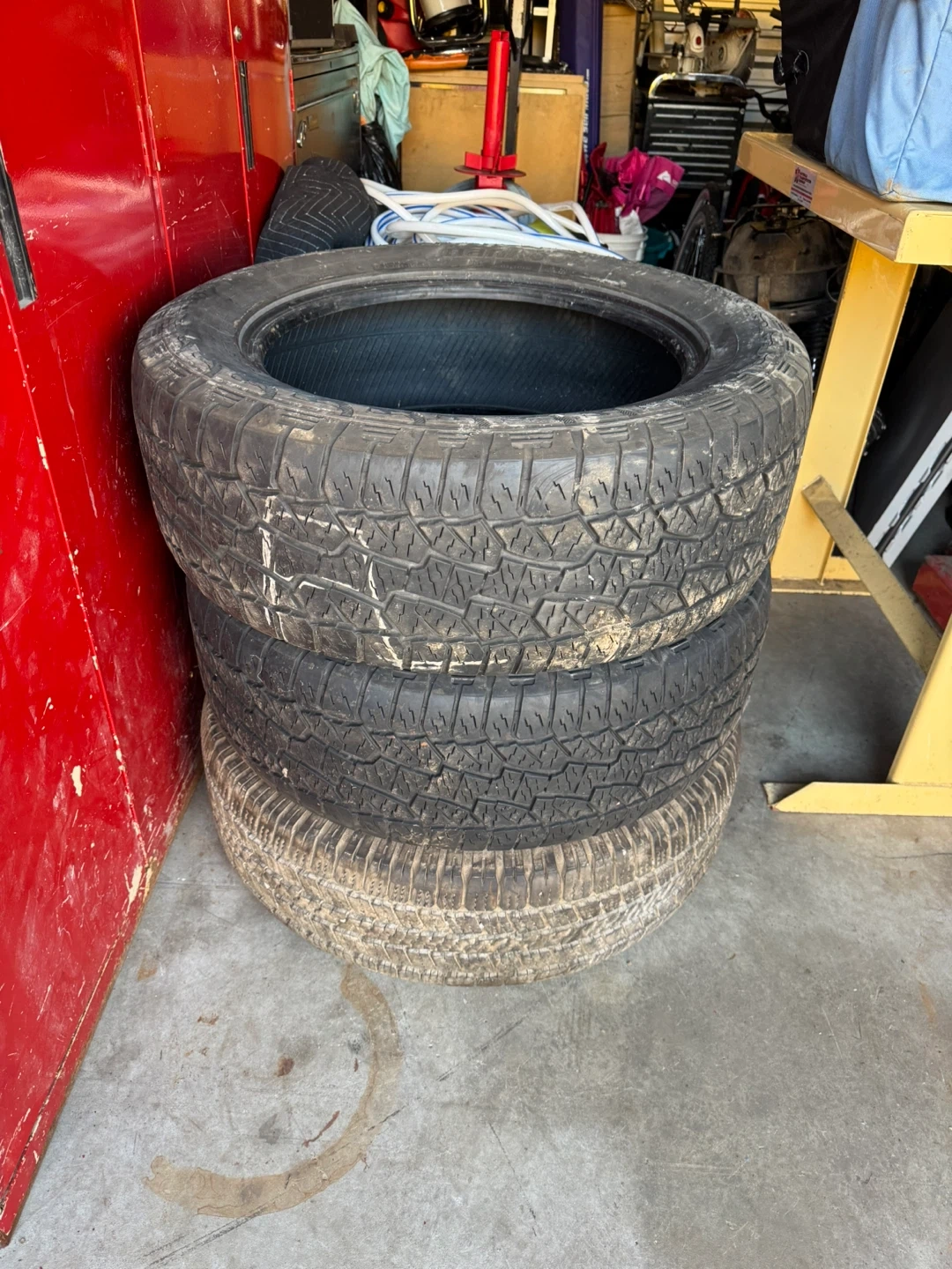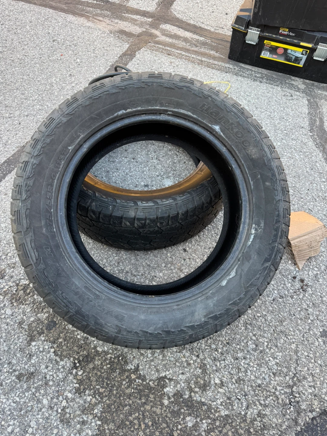 Selling a set of four Hankook tires. The size is 275/55R20. They show signs of wear, but still have some life left in them!