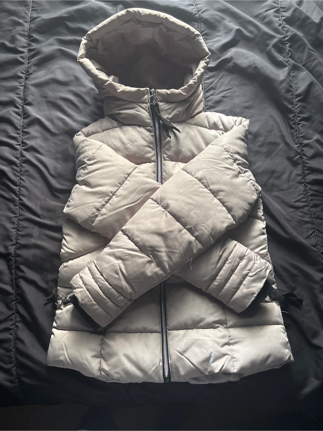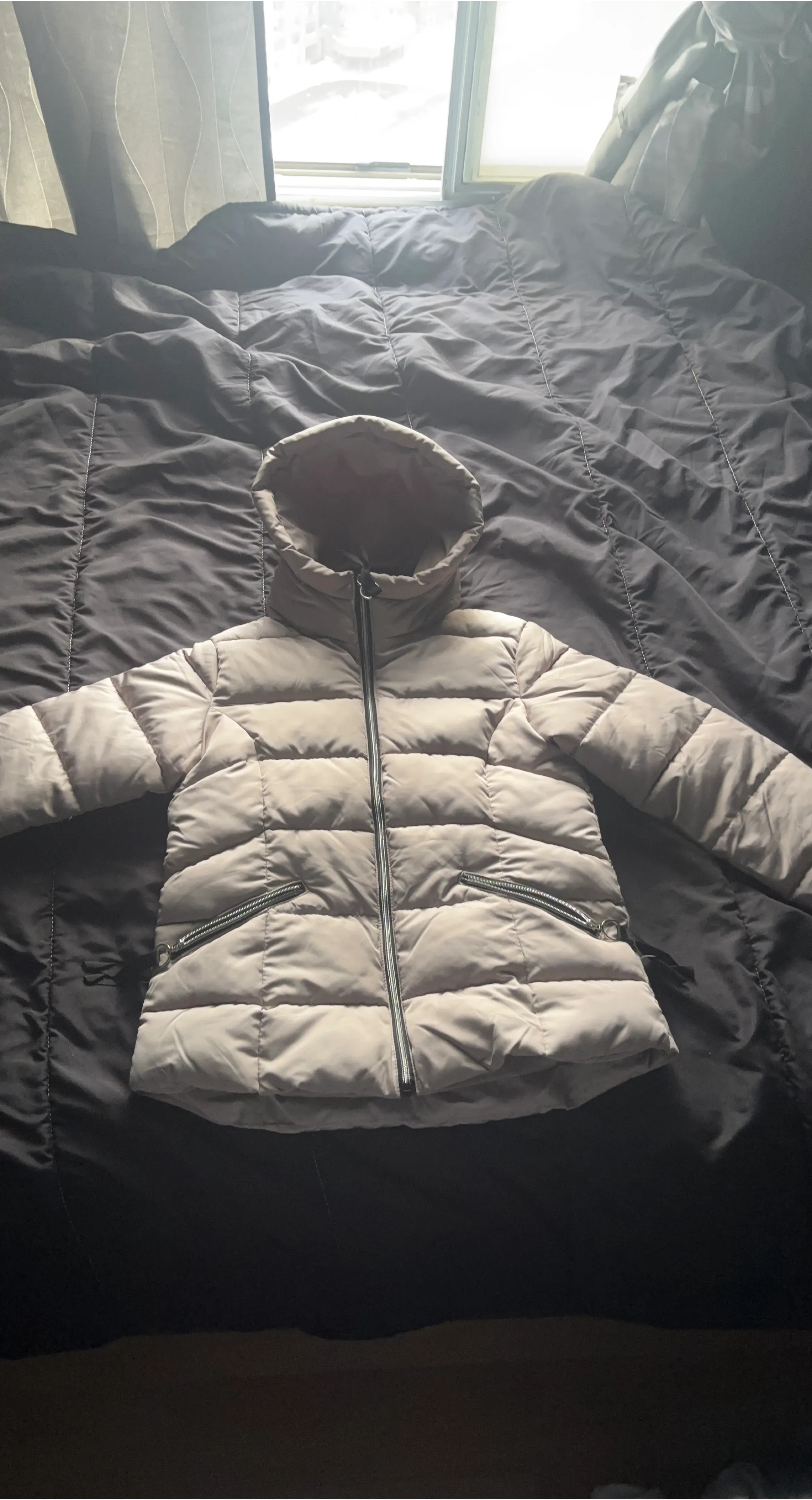 Selling a puffer jacket in a neutral colour, size medium for ladies. It's in great condition and ready to keep you warm! Perfect for those chilly Canadian days