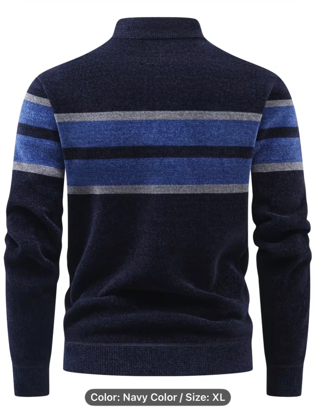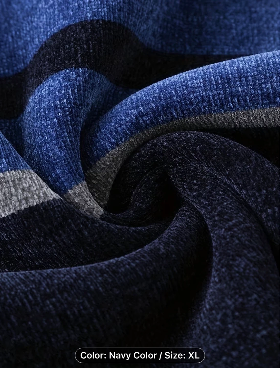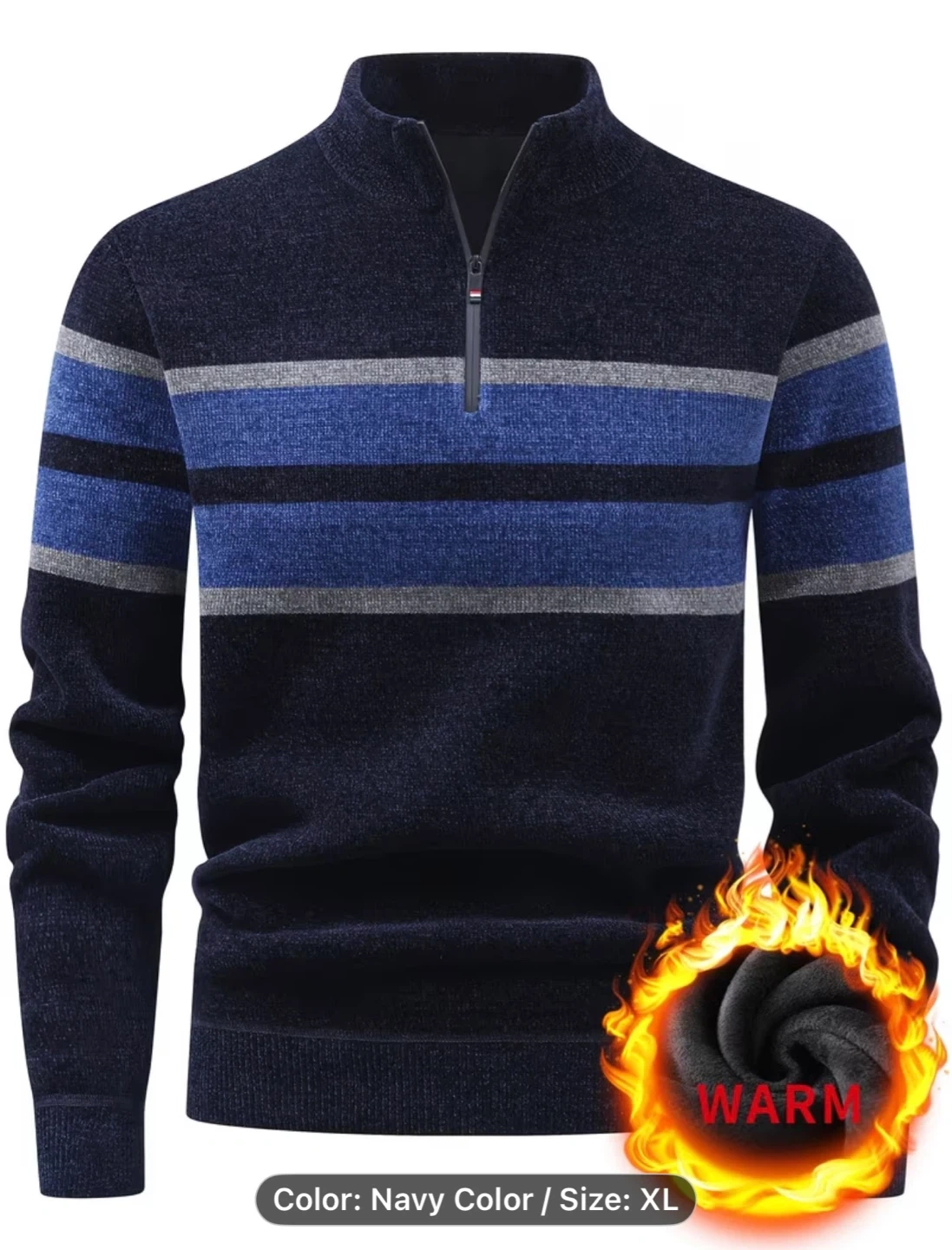 Men'S Autumn And Winter Fleece Sweater Quarter Zipper Collar Striped Color-Blocking Comfortable Warm Casual Knitted Shirt Men'S Regular Fit Top