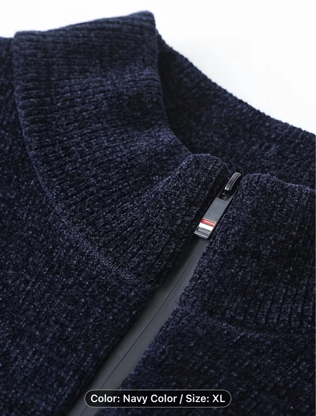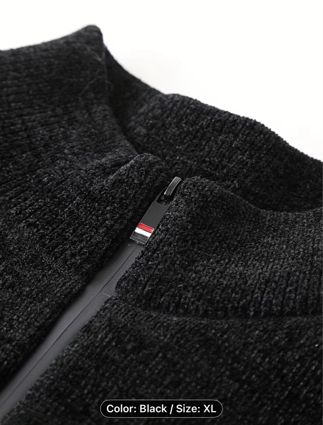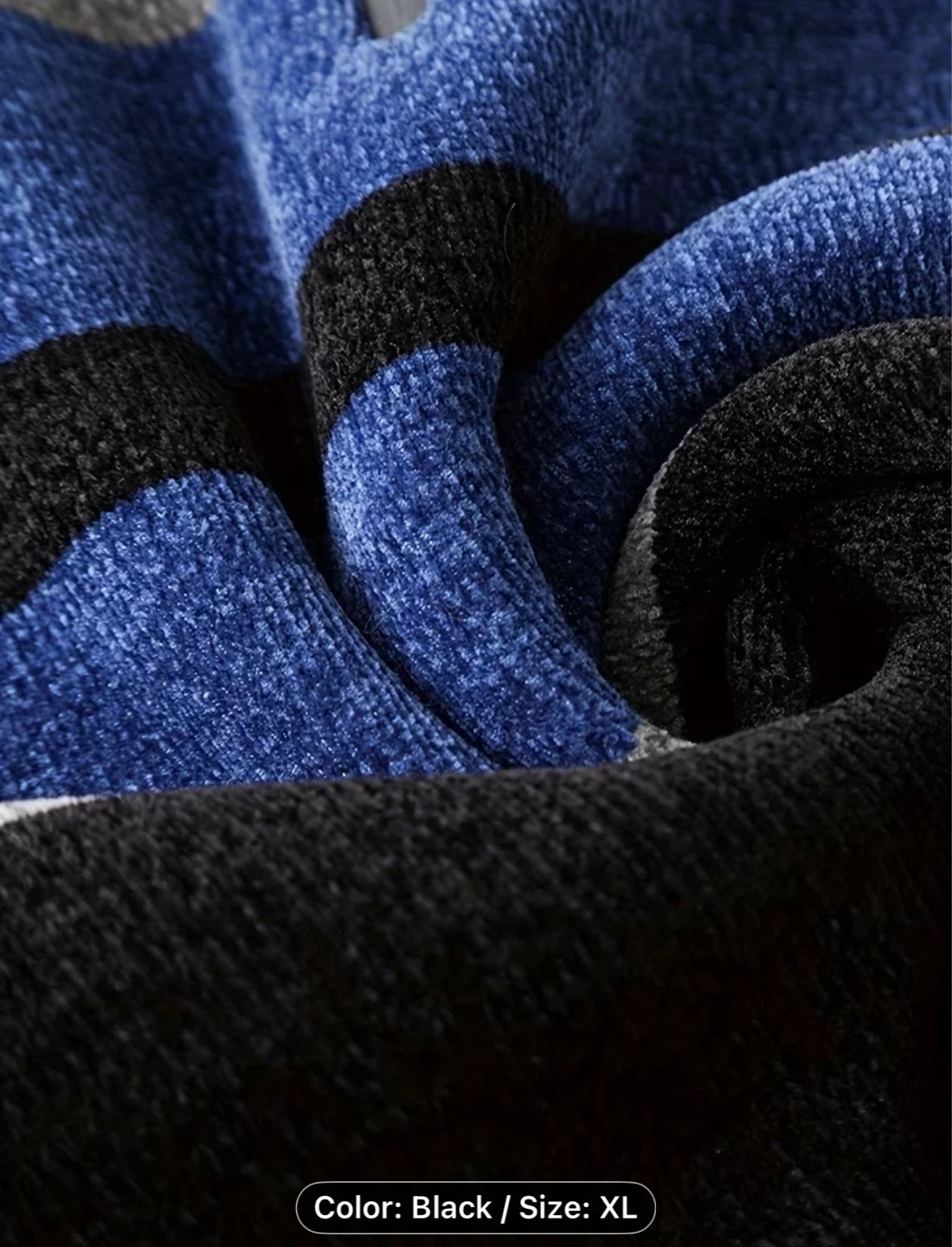 Men'S Autumn And Winter Fleece Sweater Quarter Zipper Collar Striped Color-Blocking Comfortable Warm Casual Knitted Shirt Men'S Regular Fit Top