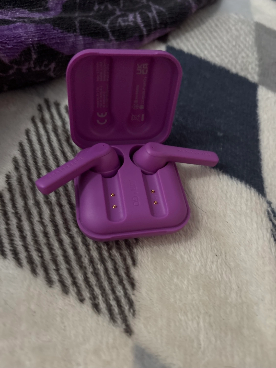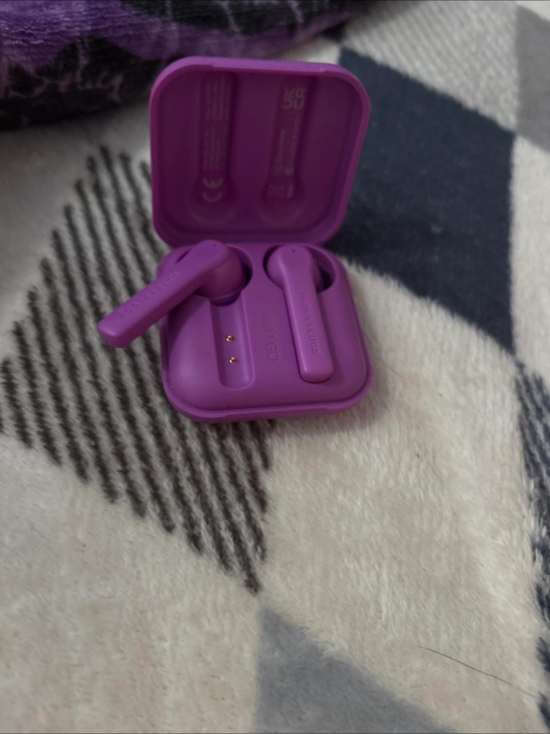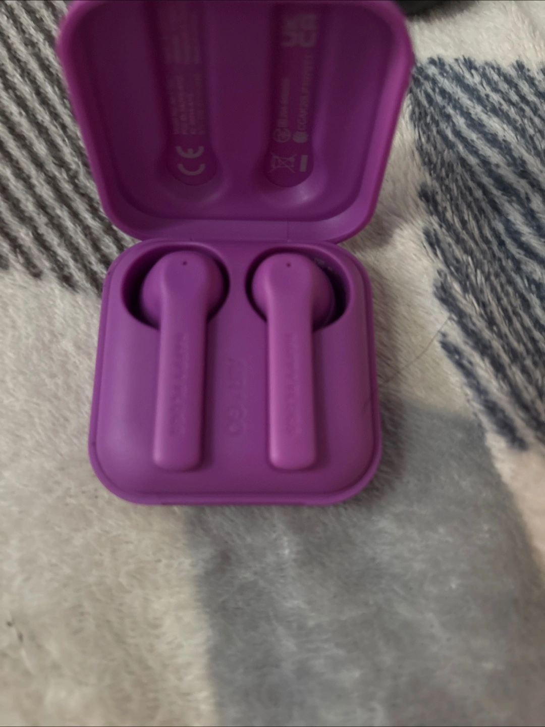 Selling a pair of Happy Plugs Air 1 Zen earbuds in purple! They come with their charging case. These earbuds are perfect for everyday use and are in great condition, you’ll have to get your own charger but they work great!