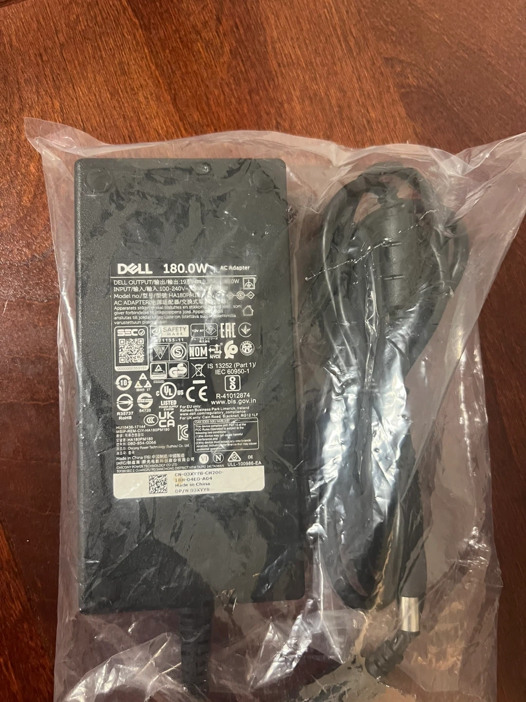 Selling a Dell 180W AC adapter. It's in its original packaging. Model number is LA180PM180. It's an AC/DC adapter.