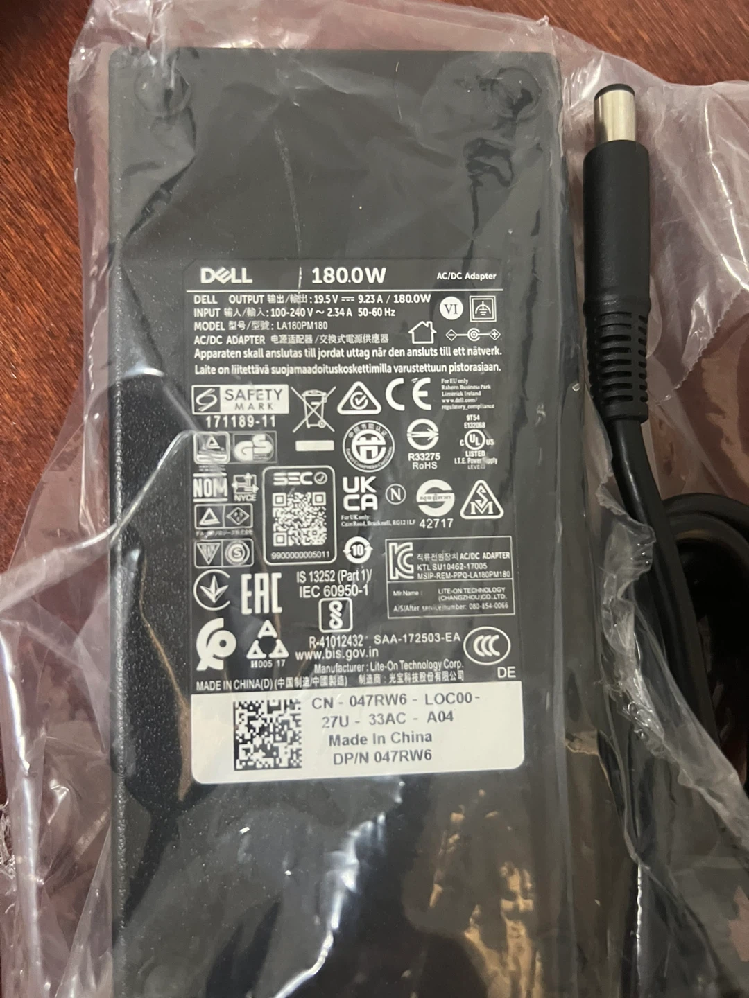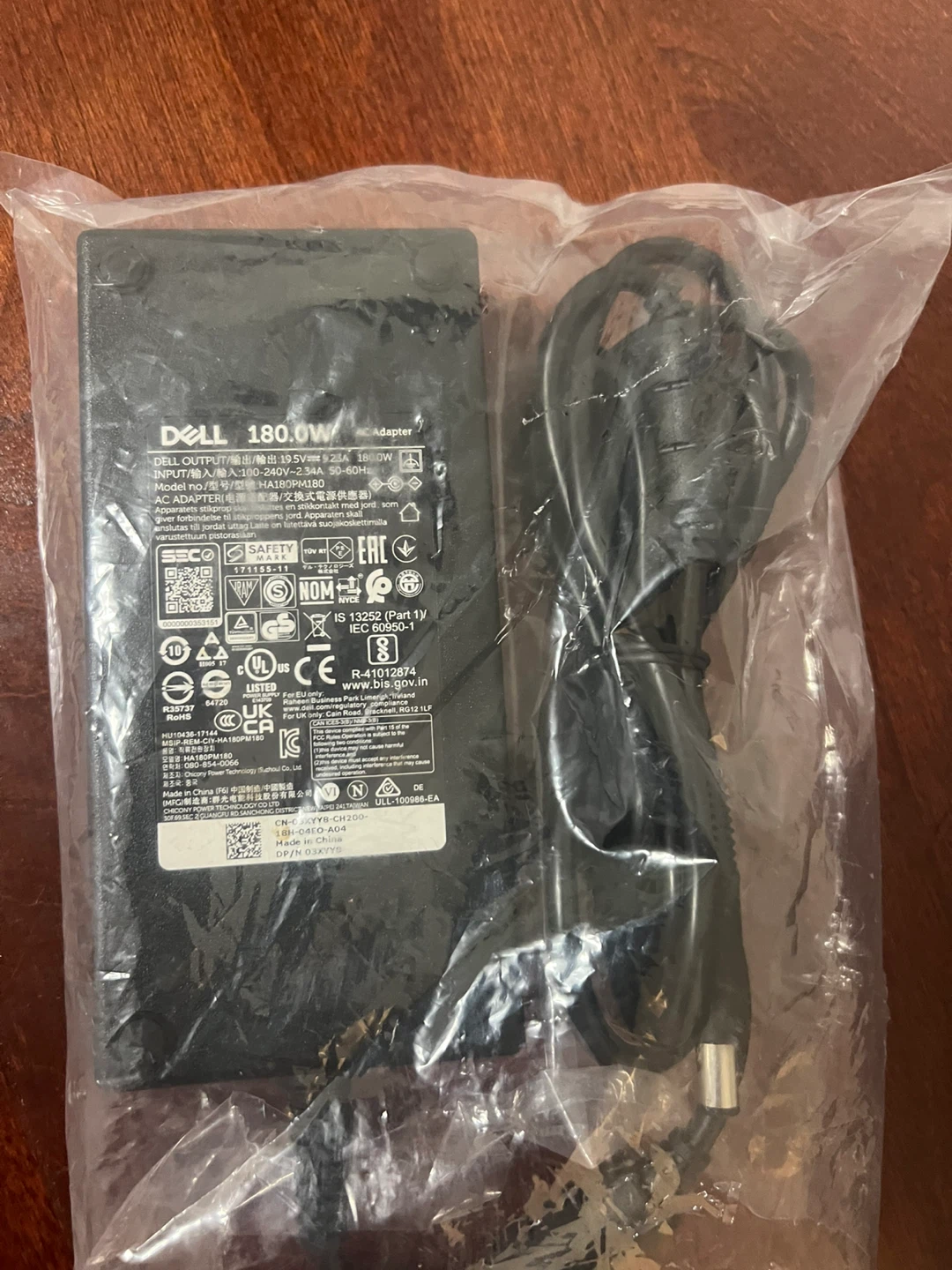 Selling a Dell 180W AC adapter. It's in its original packaging. Model number is LA180PM180. It's an AC/DC adapter.