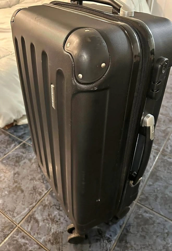 10Durable and lightweight hard-shell suitcase, perfect for travel. * 🧳 Size: 24” (L) x 10” (W) * ✨ Smooth 360° spinner wheels * 🔒 Secure zipper closure + interior straps * 🧥 Zippered divider with mesh pocket * 🖤 Sleek black design, easy to clean