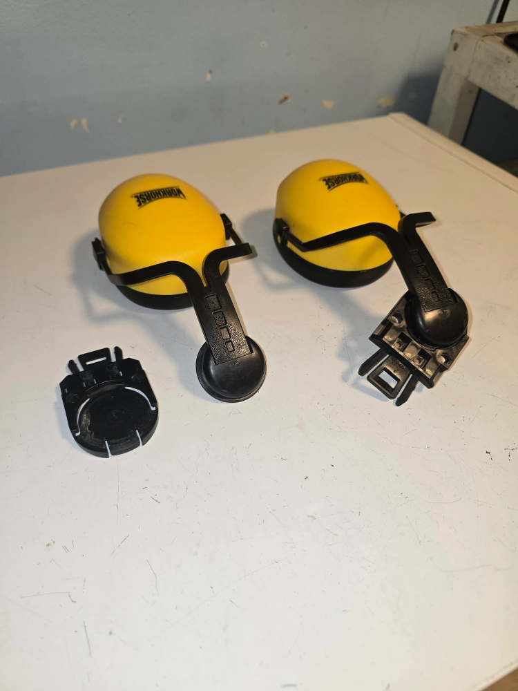 79Got a hard hat ear protection setup from Marks this year. Even though it says universal it wouldn't fit employers hard hat. Pretty much brand new other than trying to fit it in mine like a dummy. i have included a pic of a hard hat it will fit on, i did test it have a look if its like the style in the picture it will work for yours. 5 dollars pickup only located in Mississauga hardhat not included. safety first