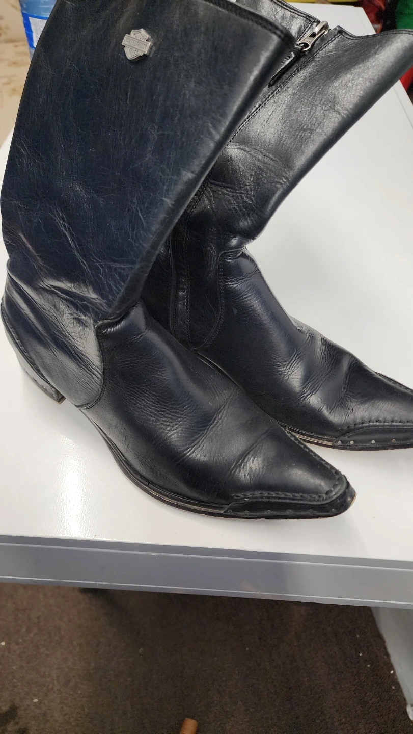67Selling a pair of Harley Davidson black leather boots. They have some wear, as you can see in the photos, but they still have a lot of life left in them!