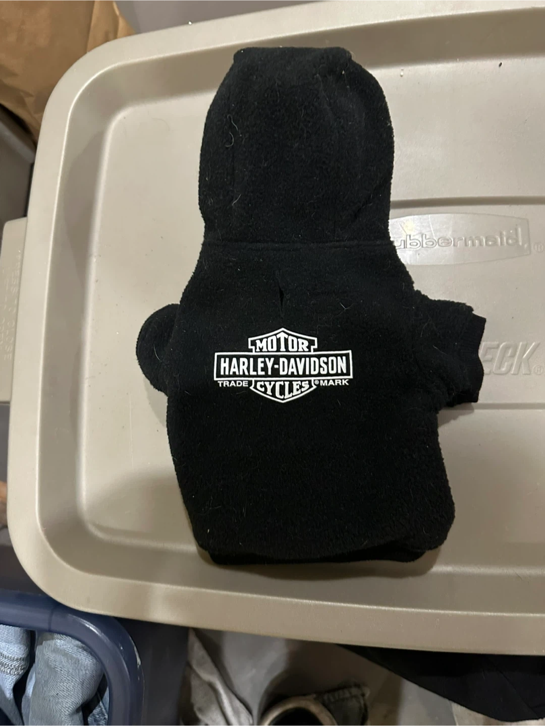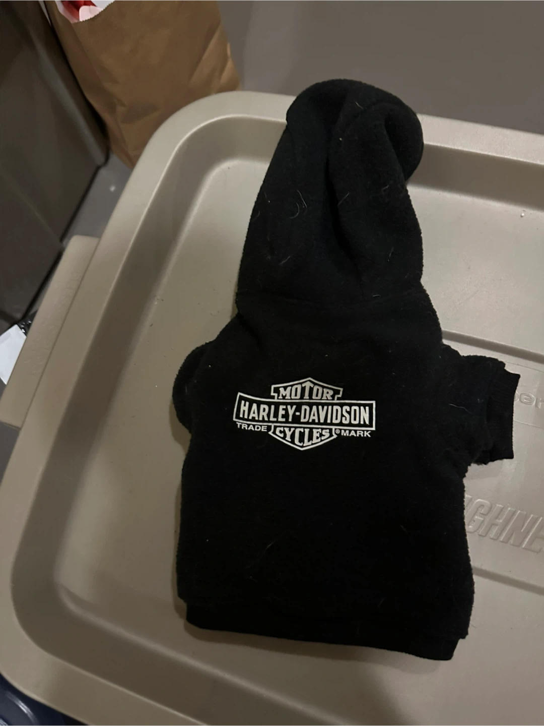 Keep your furry friend warm with this Harley-Davidson dog hoodie! It's a size XS and features the classic Harley-Davidson logo on the back
