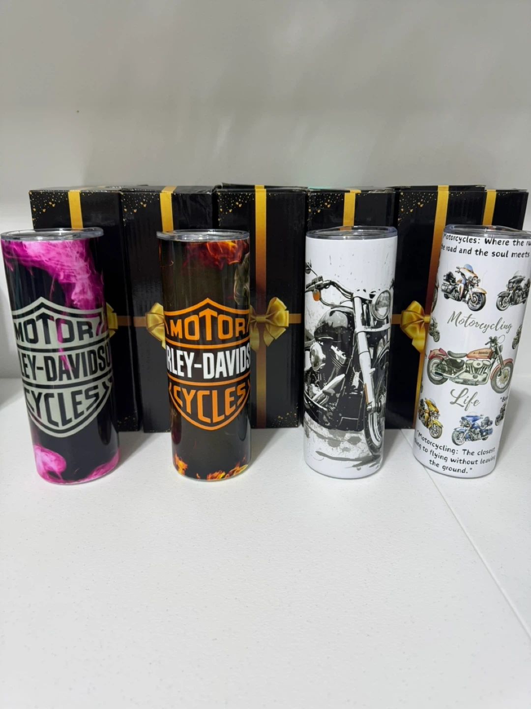 19I have a few Harley-Davidson motorcycle tumblers for sale! They all come in their original boxes. Perfect for any motorcycle enthusiast!