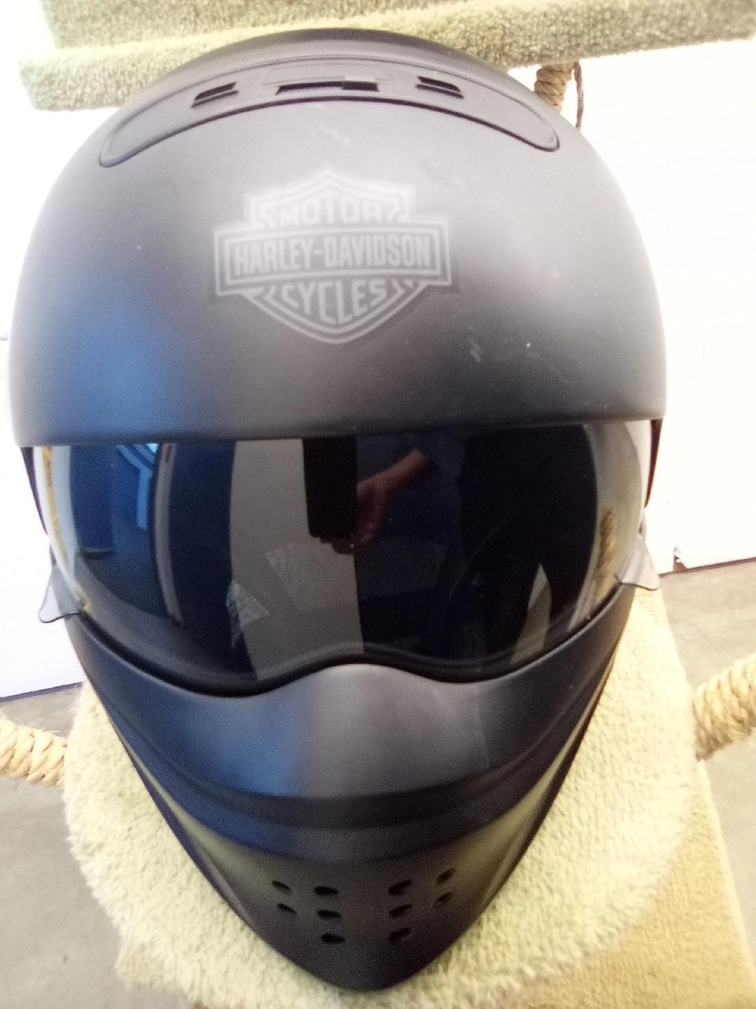 75Selling "The Pilot " 3-In-1 Harley Davidson Motorcycle Helmet *Original Owner* $175.00 It's in great shape. matte black. It's FMVSS No. 218 certified. Size M. No accidents, hardly used. Asking $175 The helmet also includes an integrated sun shield to protect against sun glare and a sleeker profile for a cool look. Here’s a few specs: Average Weight: 3 lbs. 6 oz. or 1,531 grams. Helmet Construction: Thermoplastic shell. Double D-ring chin strap. Stay Cool: Front vent on top of helmet and breathing perforations on face mask. Interior & Linings: Moisture-wicking, antimicrobial liner is removable and washable. Ride Enhancing Features: Unique half helmet can be worn three ways for added comfort. For full comfort, add the face mask and rear comfort sleeve. For partial comfort, add the rear comfort sleeve. To wear as a half helmet, remove both the face mask and the rear comfort sleeve. Retractable sun shield with 95% UV protection and anti-fog coating on both sides. Helmet bag included. Manufacturer & Certification: Scorpion. Half shell meets DOT safety standard FMVSS 218, additional components are for comfort only and do not provide any safety features