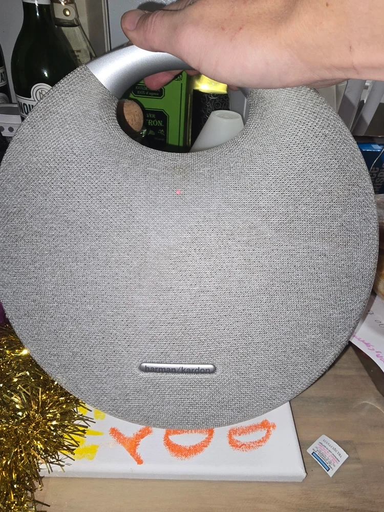 60Selling a Harman Kardon Onyx Studio 4 Bluetooth speaker in great condition! It has a sleek, round design with a fabric covering. Perfect for enjoying your favourite tunes at home or on the go.. Works amazing and is Bery loud if you want it to be.