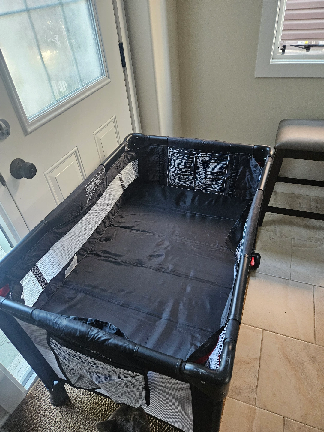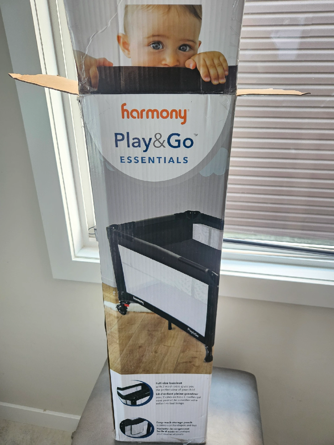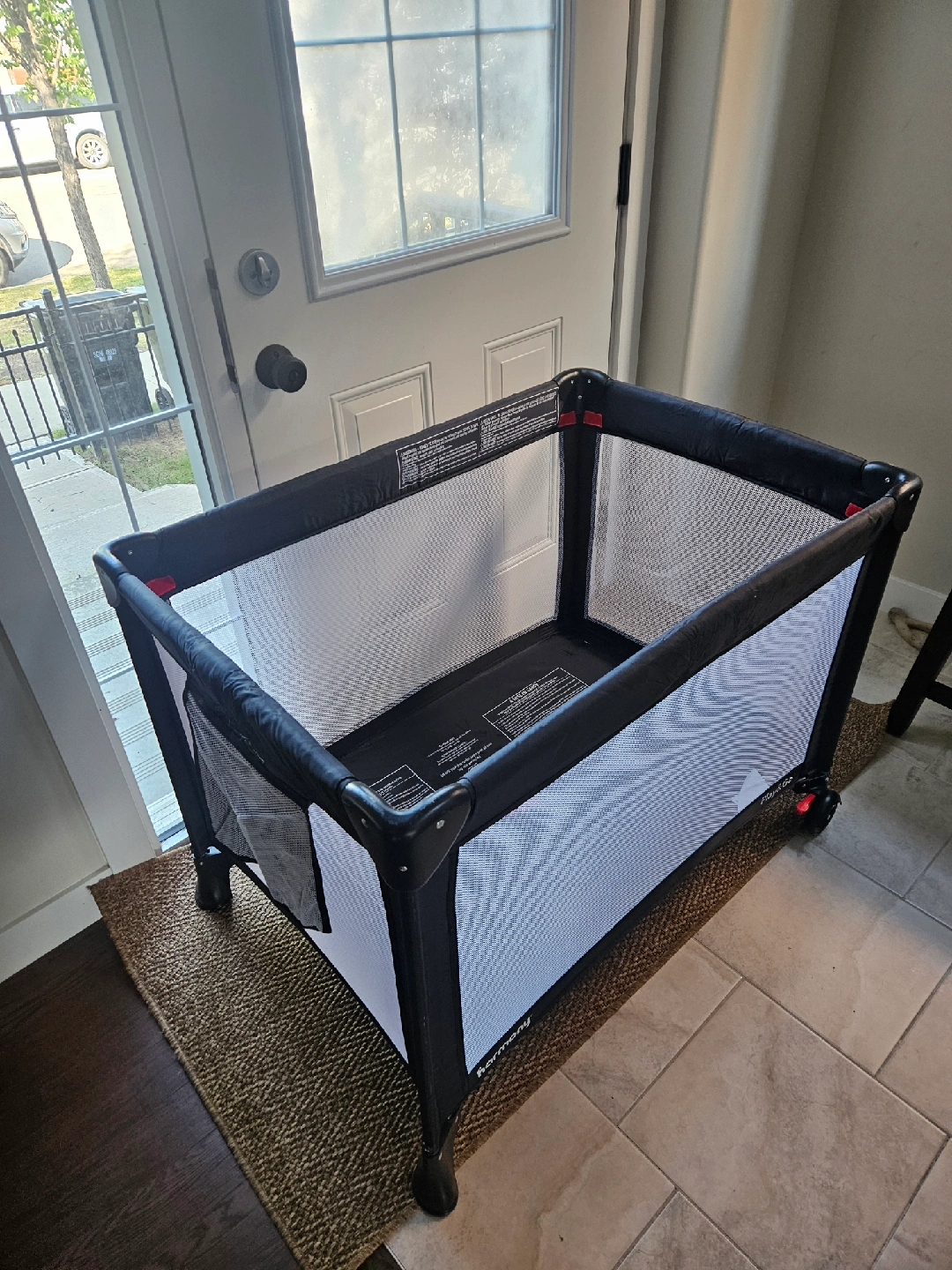 Selling a Harmony Play&Go Essentials playard in black. It's in great condition (barely used) and comes in the original box.