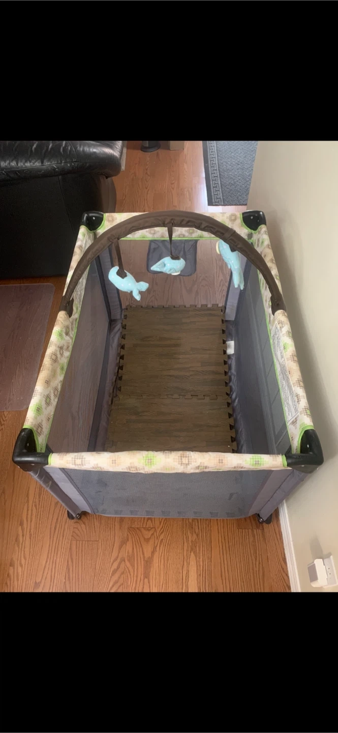 348Harmony Play/Sleep Crib The Harmony Playard brings comfort to your little one no matter where you go — and makes it easier on you! There's no more convenient solution when it comes to playpens. Its durable frame makes it perfectly strong and comfortable. At home or away, baby will be kept comfy and cozy. Make sure your little one is comfortable no matter where you go with the Harmony Play Playard. With a durable and sturdy frame that can stand up to lots of on-the-go use. * Handy wheels add convenience as the playard can be easily positioned anywhere * Durable frame increases longevity and makes this playard ideal for travel * Airy mesh on all sides provides maximum ventilation and allows little one to see all the action -Has toys hovering above to entertain your child Great for keeping your child safe while you step out of the room - If you need to finish cooking, Showering, Answer the door, Do something important, you can count on the Playpen Crib to keep your child safe and out of trouble! Put their favourite toys and some snacks inside and they will play and crawl around safely while having fun! With a soft padding, they can have relaxing sleeps and naps inside. Play and crawl around safely in the lightweight Graco Playard Crib It can be used as a crib, where your child can sleep and have their own bed and space With the see-through mesh sides, you can easily see your child even when far away Features toys dangling and hanging above for fun times for your baby Can be picked up or delivered Cheap - message me