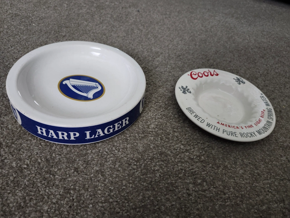 166Harp Lager tip tray Made by Wade Regicor, Made in England.and Coors ashtray. Great for man cave