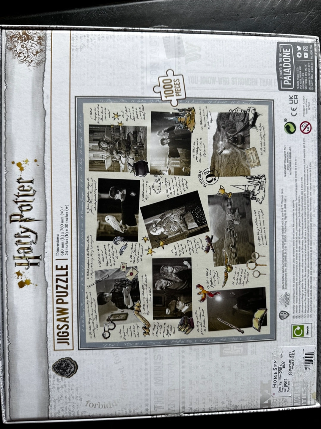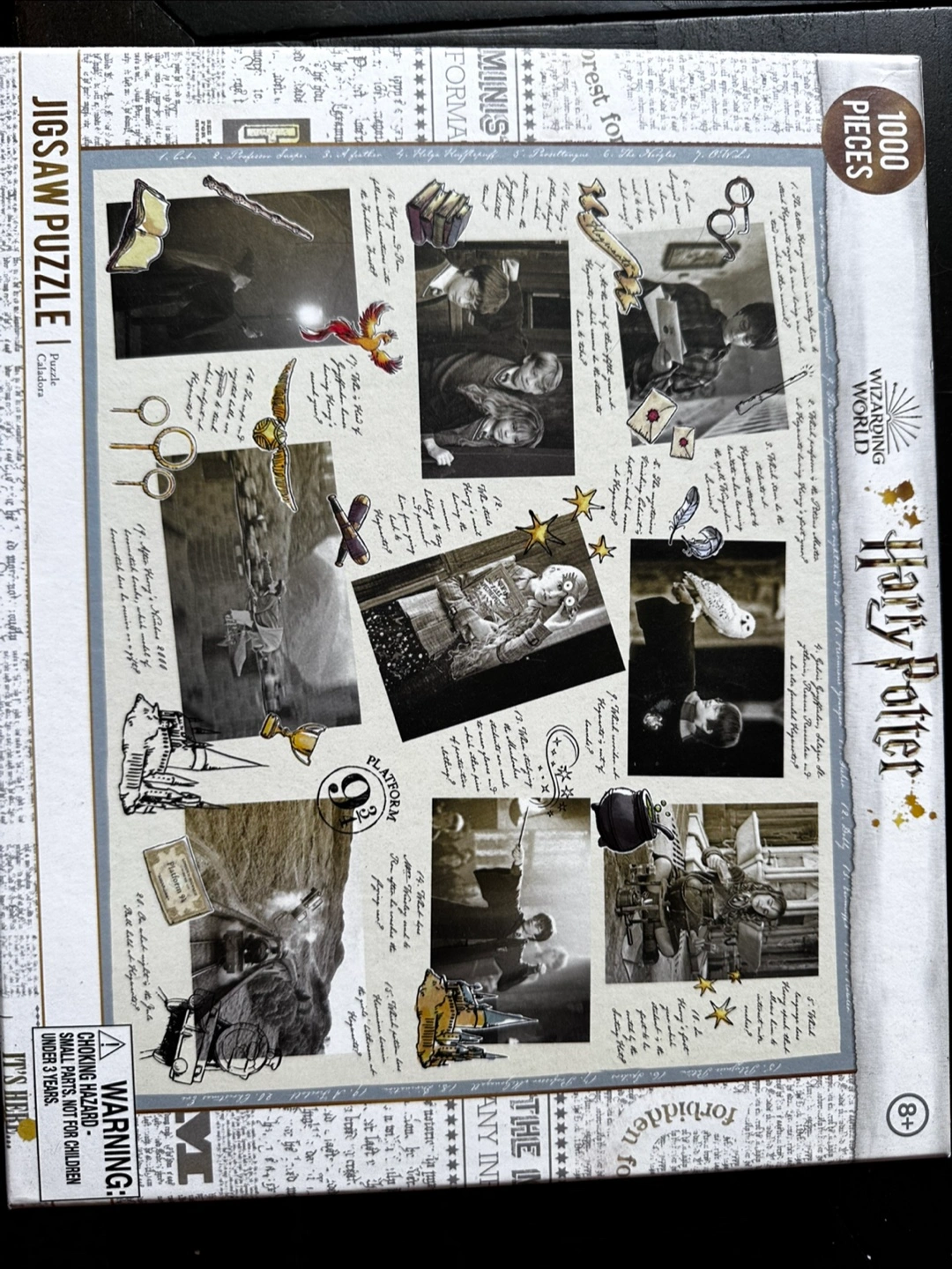1000-piece jigsaw puzzle. Features various Harry Potter scenes. Box shows some minor wear. Used once