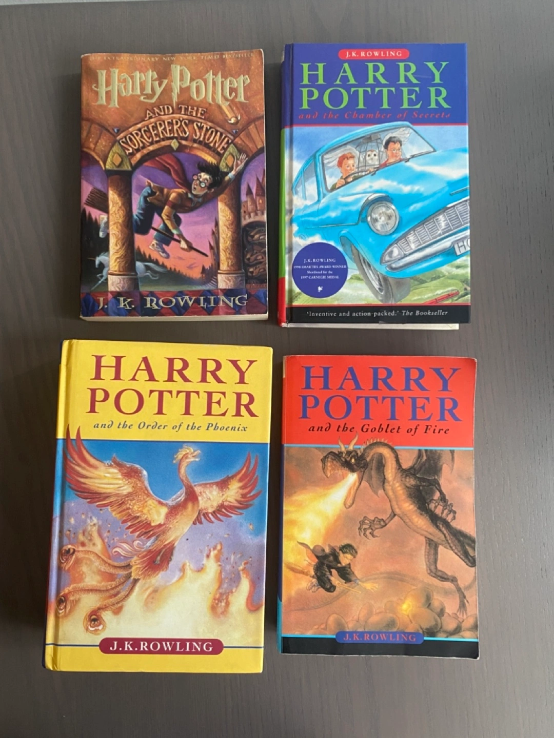 Selling the first four Harry Potter books by J.K. Rowling! Includes: - Harry Potter and the Sorcerer's Stone - Harry Potter and the Chamber of Secrets - Harry Potter and the Order of the Phoenix - Harry Potter and the Goblet of Fire (this one has some water damage) That are all in ok used condition $5 each or all 4 for $10 Acadia SE