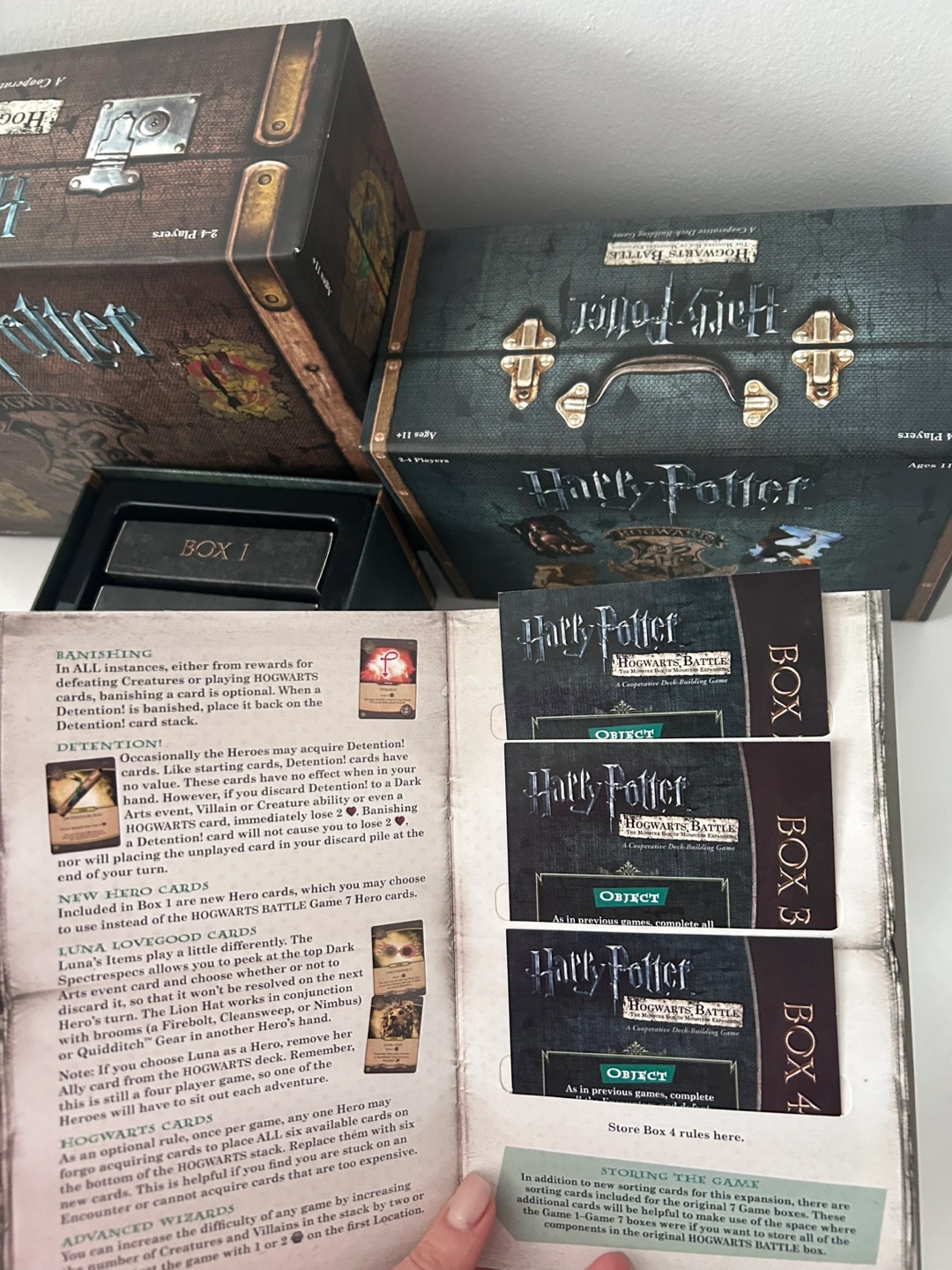 Cooperative deck-building game. Includes multiple game boxes, cards, tokens, and dice. For 2-4 players. Ages 11+. Excellent condition.