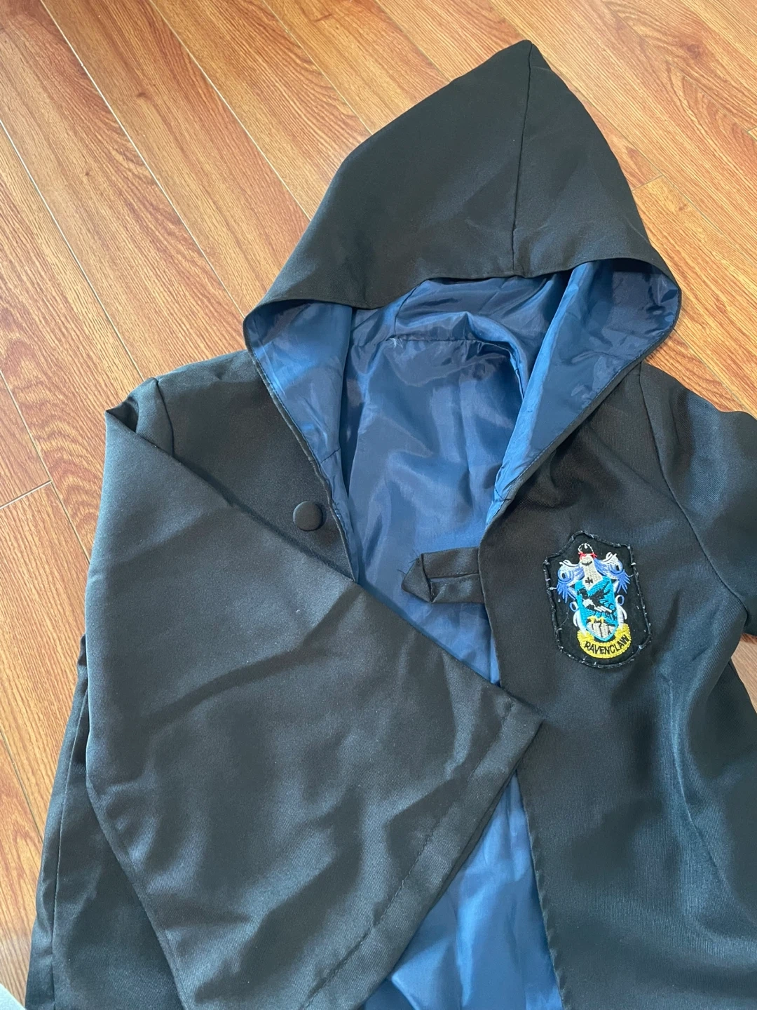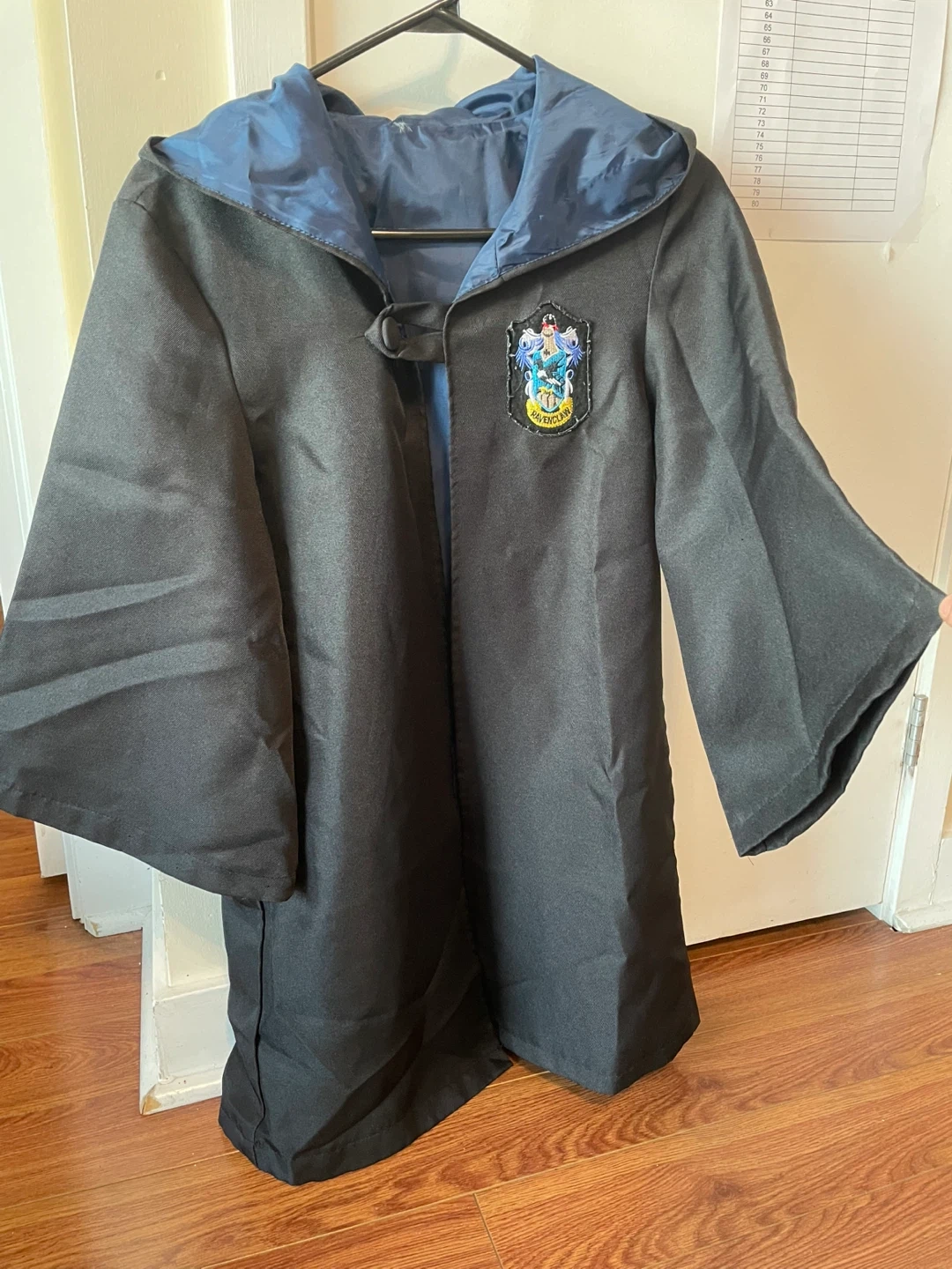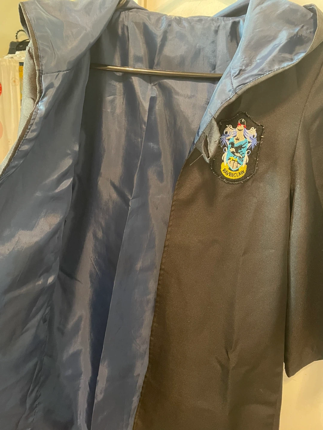 102Selling a Harry Potter Ravenclaw robe! It's in great condition and perfect for any young witch or wizard. The robe is black with a blue lining and the Ravenclaw crest on the chest. It's a fun costume piece!