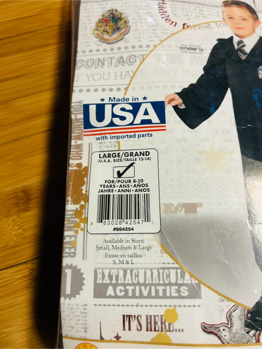 10Selling a Harry Potter Slytherin Robe child costume! It's a size Large (U.S.A. Size/Taille 12-14). It's in great condition and ready for some magical adventures!