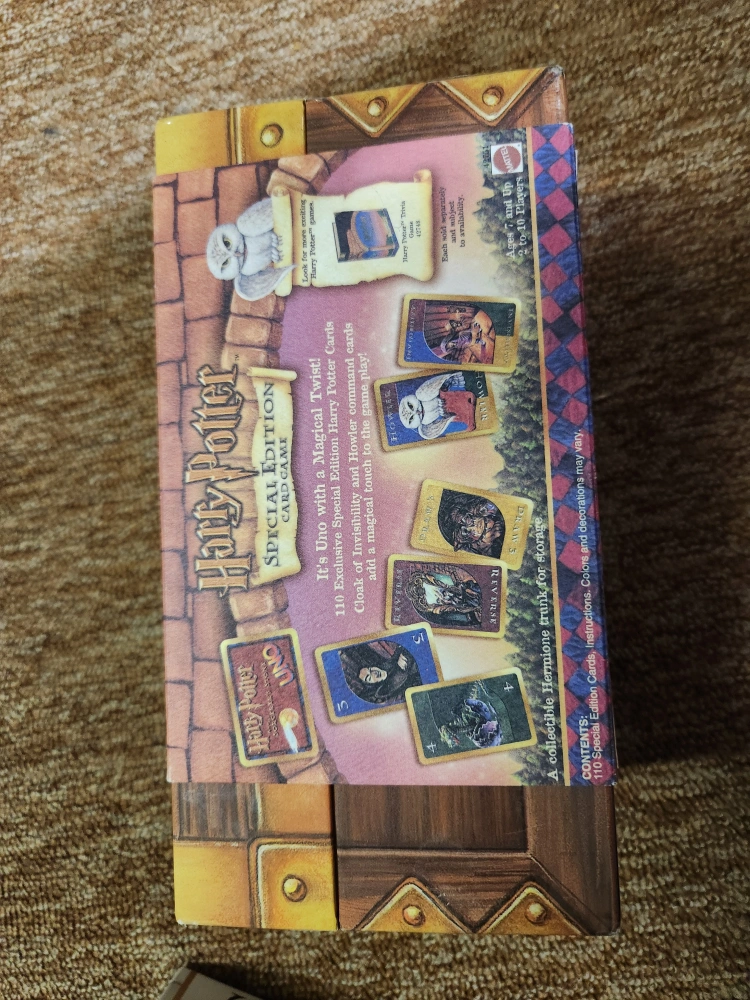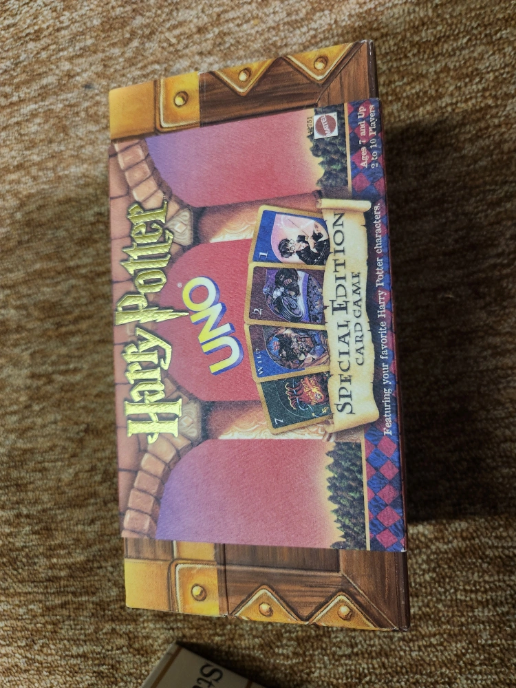 Selling a Harry Potter Uno Special Edition card game! It's a fun twist on the classic Uno, featuring your favourite Harry Potter characters. The box is included, and it's in great shape. Ages 7 and up, for 2 to 10 players