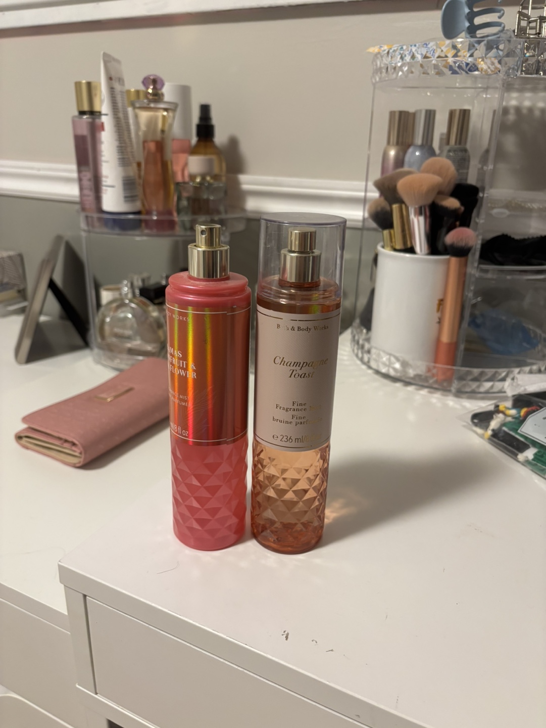 Two lightly used fragrance mists. One is Champagne Toast and the other is Fruit & Flower. Both are 236 ml.