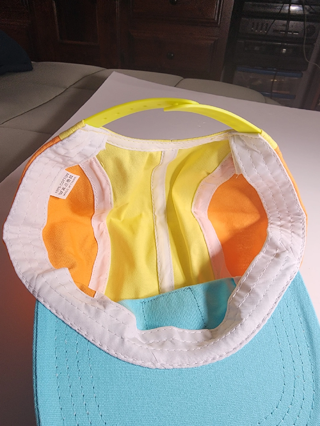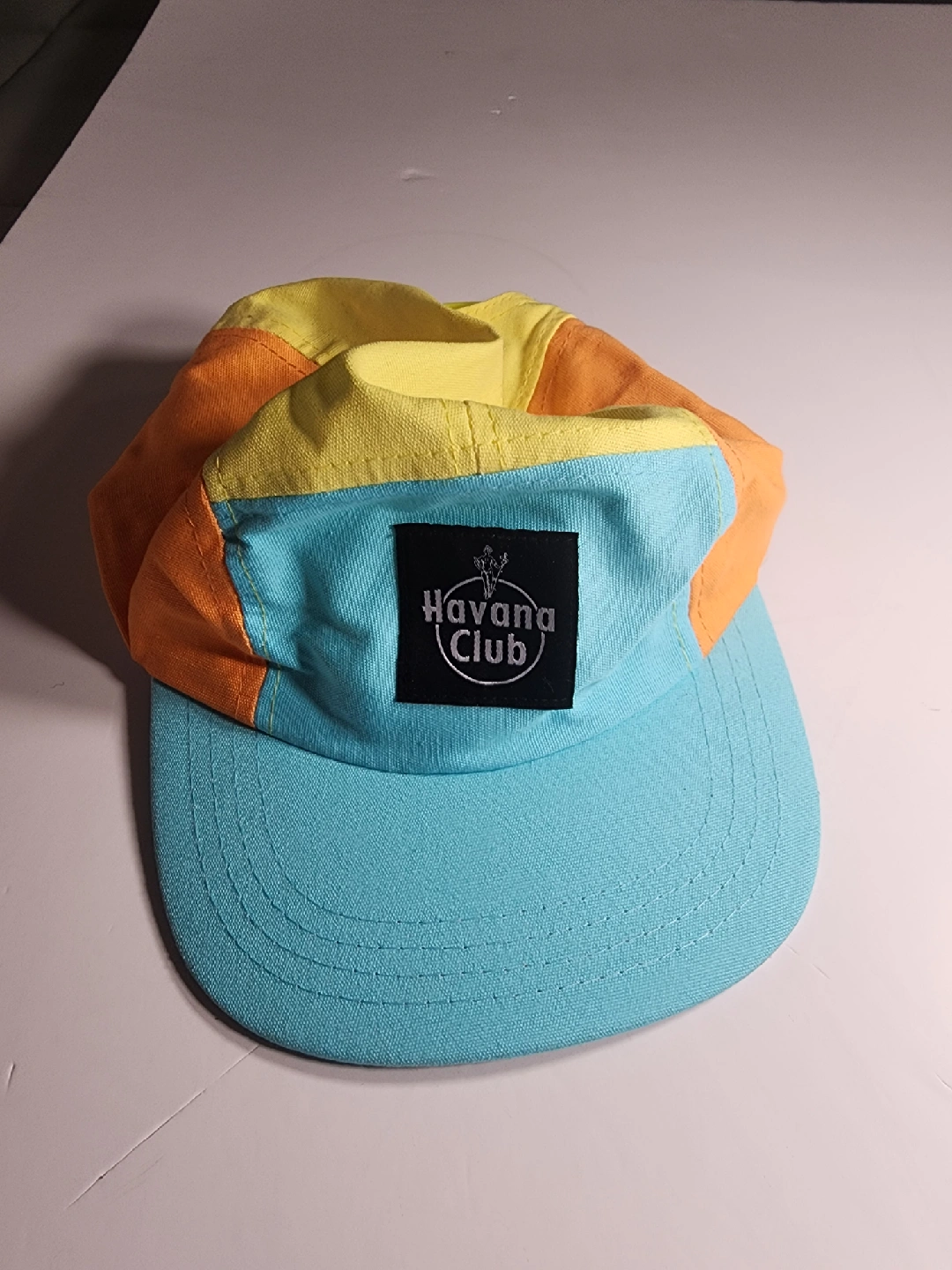 137Selling a Havana Club cap in a fun colour block design! The cap features a light blue brim, yellow top, and orange sides. It's in great condition and has an adjustable strap for a comfortable fit