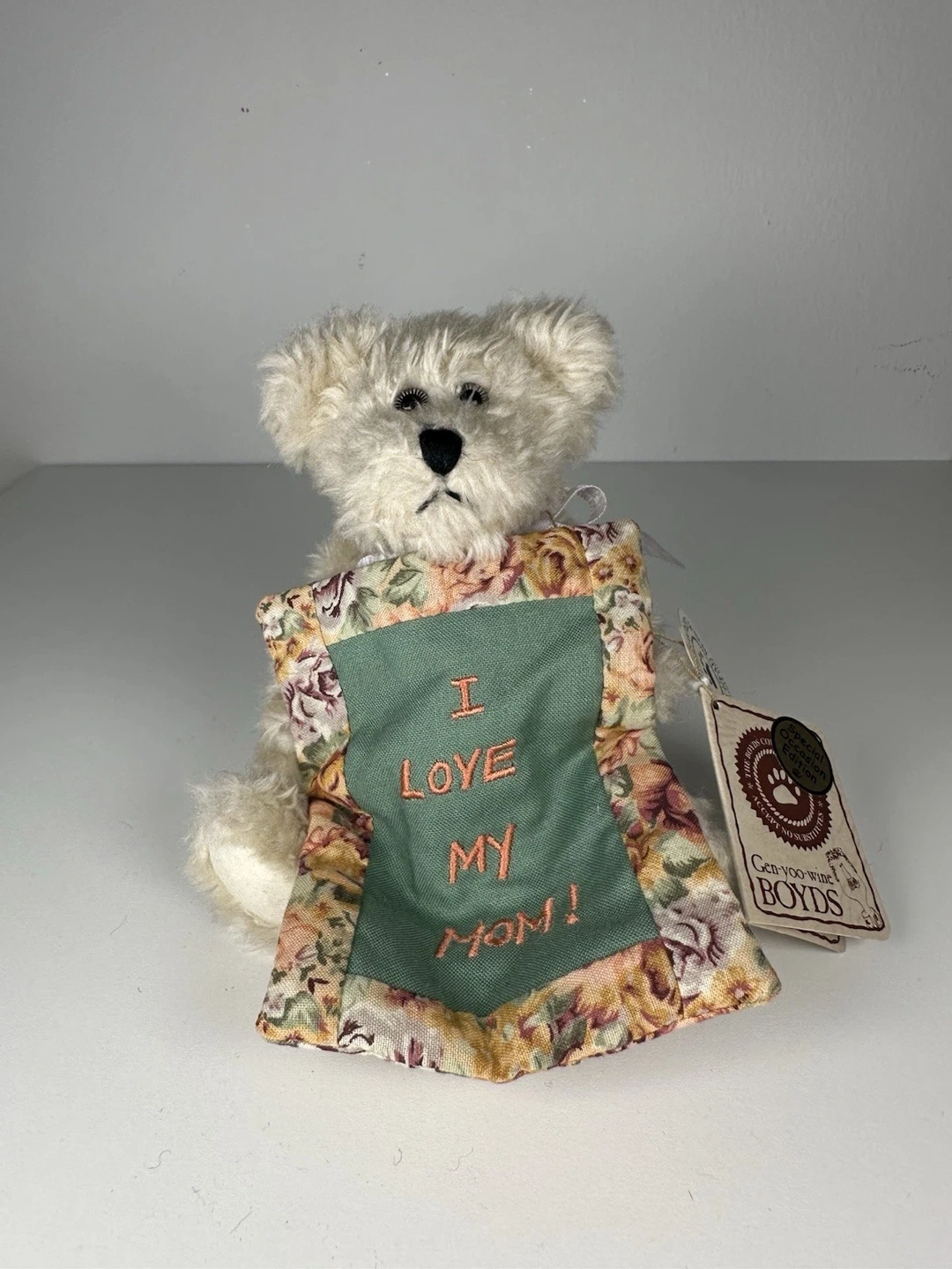 Boyds Bears "I Love My Mom" Teddy Bear. Archive Collection. White plush bear with black eyes. Perfect for Mother's Day. Manufactured between 1980-1989. Let me know if you're interested!