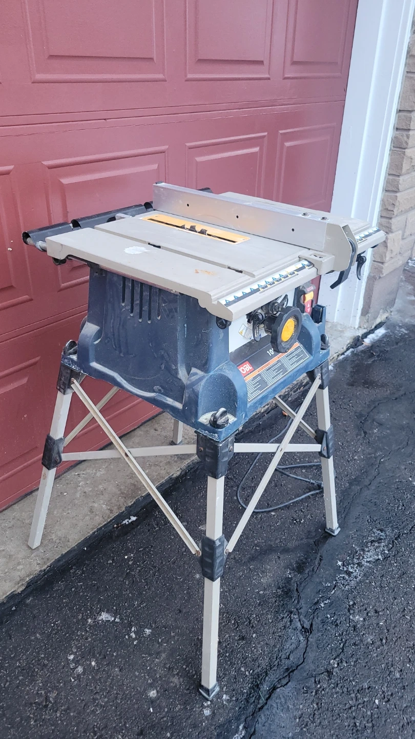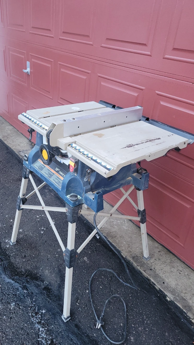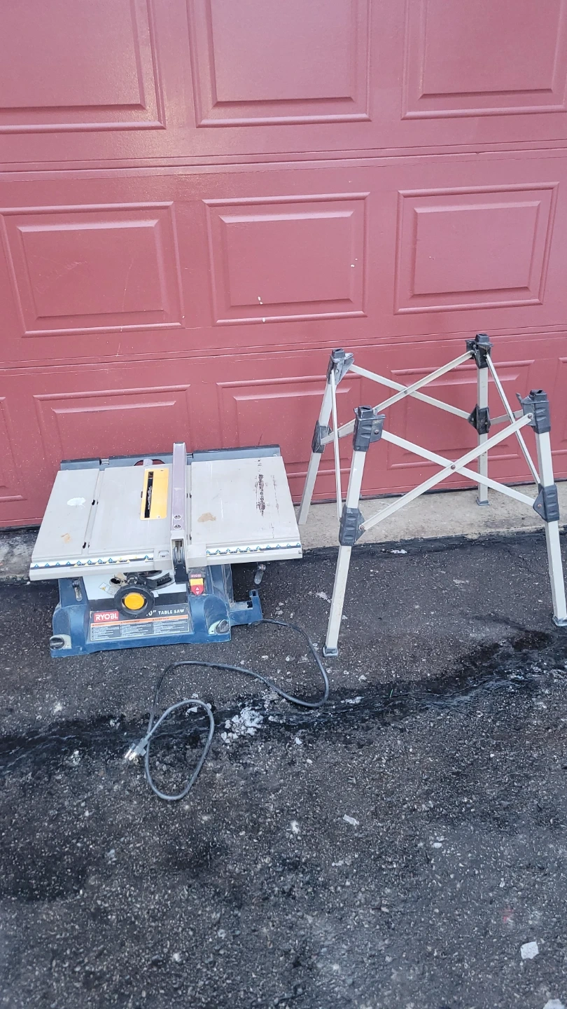 This Ryobi 10-inch table saw is a reliable tool for your workshop. It includes a folding stand for easy setup and storage. In excellent working condition