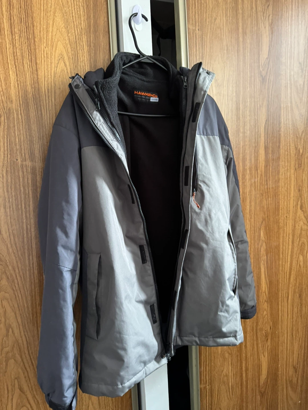 5I'm selling a hawks and Co 3-in-1 jacket in grey and black. It's in great shape and ready for the cooler weather! It's a versatile jacket that can be worn in multiple ways.