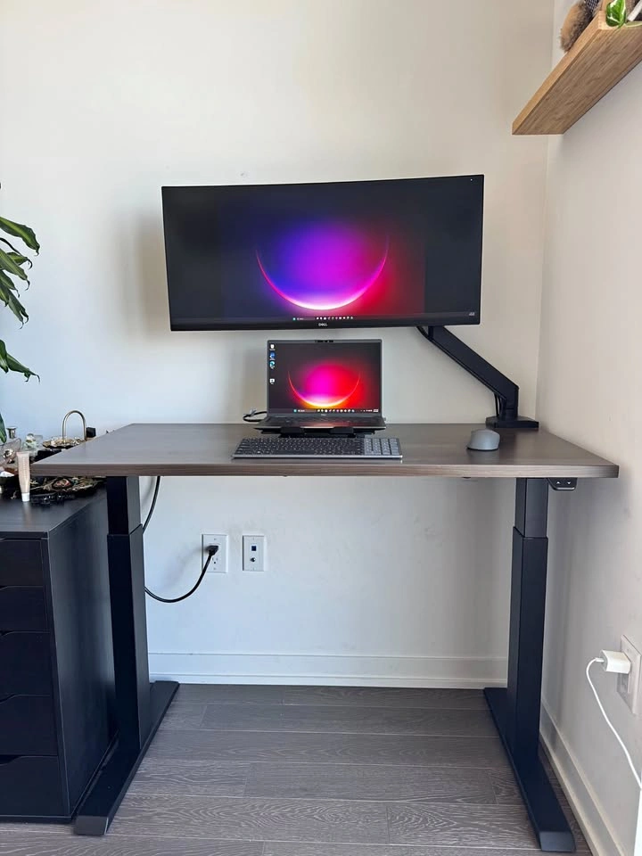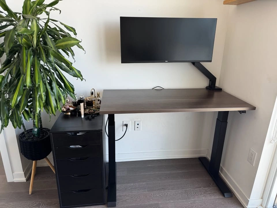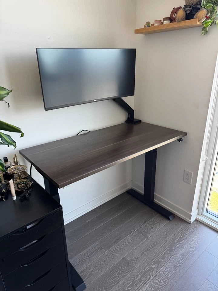 Haworth Upside standing desk, featuring a sleek charcoal top and black frame. Barely used so it’s in great shape and ready to enhance your work-from-home setup with its ergonomic design and adjustable height. Transform your workday with the flexibility to sit or stand! Here are some specs: * Brand: Haworth * Model: Upside * Colour: Charcoal top with black frame * Adjustability: Electric height adjustment Having a clear out of unused items. If the ad is up, it's available! Worksurface, Rect, 23D x 46W, Laminated, Edgeband, Standard Core, Simple Paddle Standard Range: (Single Stage) Height Adjustment 27.4" (696mm) to 46.6" (1184mm)