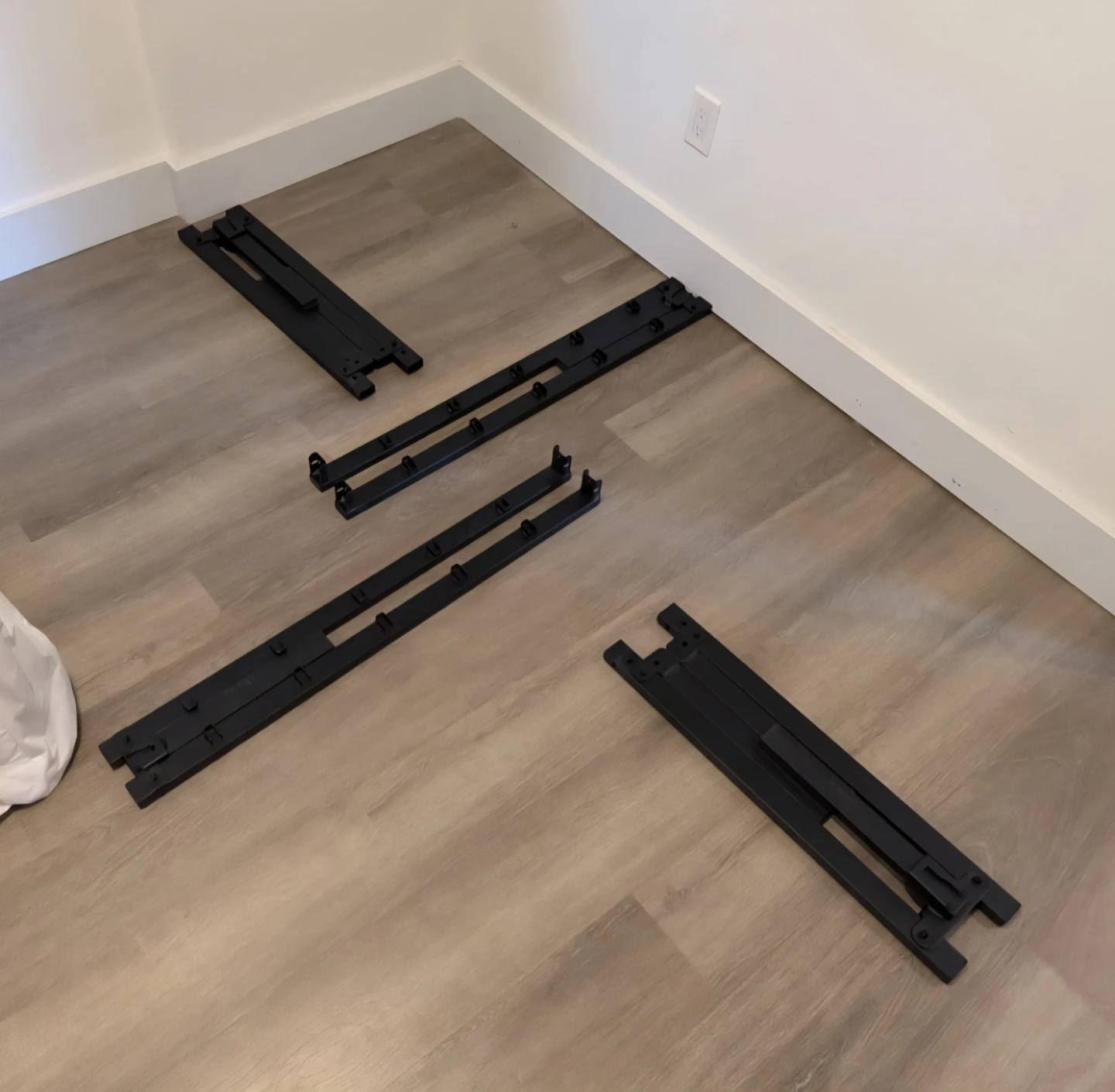 Sturdy black metal bed frame, ready for assembly. This platform bed frame offers a strong foundation for your mattress. Simple construction, easy to put together!