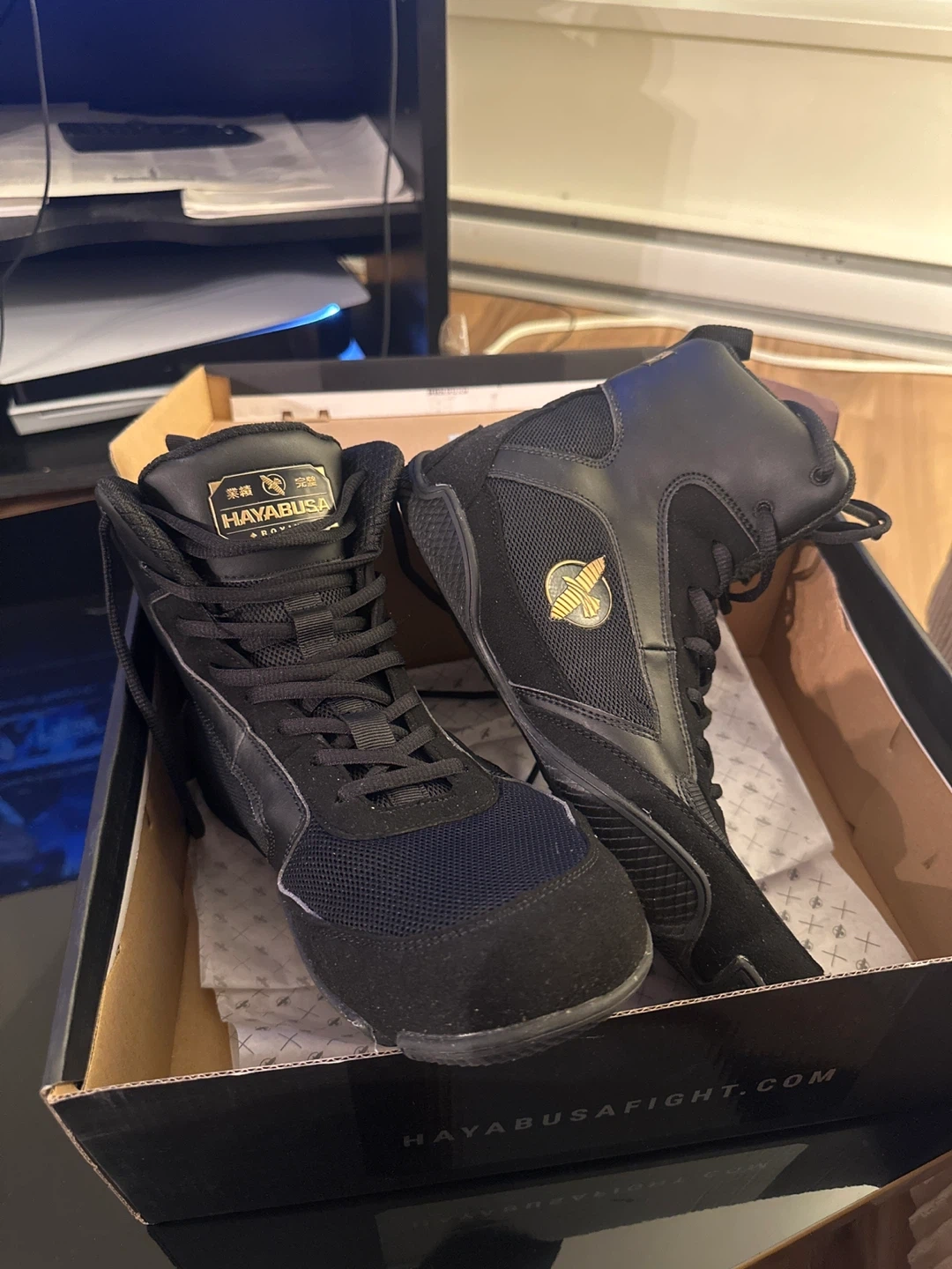 60Selling a pair of Hayabusa boxing shoes in black. They are in great condition and come with the original box. Perfect for boxing or other combat sports! Size 10.5