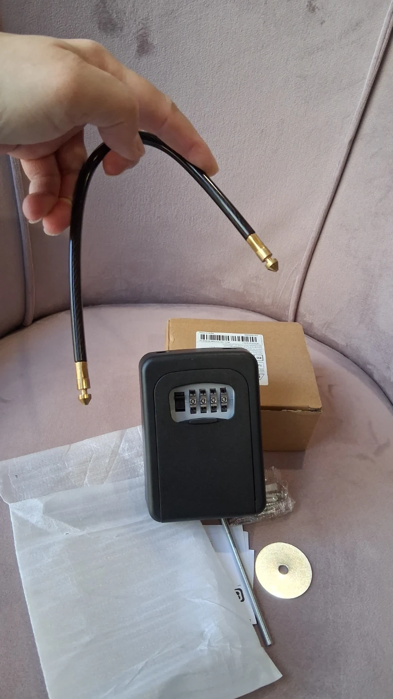 Portable black resettable combination lock box. Includes a FLEXIBLE shackle with STRONG BRIAD STEEL, allow flexibility on hooking to anywhere to secure your lock. Perfect for storing key.
