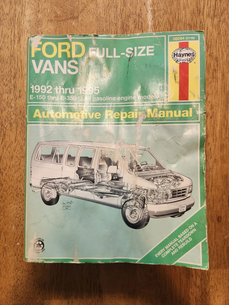 132Not in great condition but still usable Repair manual for Ford full-size vans. Covers E-150 thru E-350 models with inline six-cylinder and V8 gasoline engines. Step-by-step procedures, easy-to-follow photos, wiring diagrams, common tools.