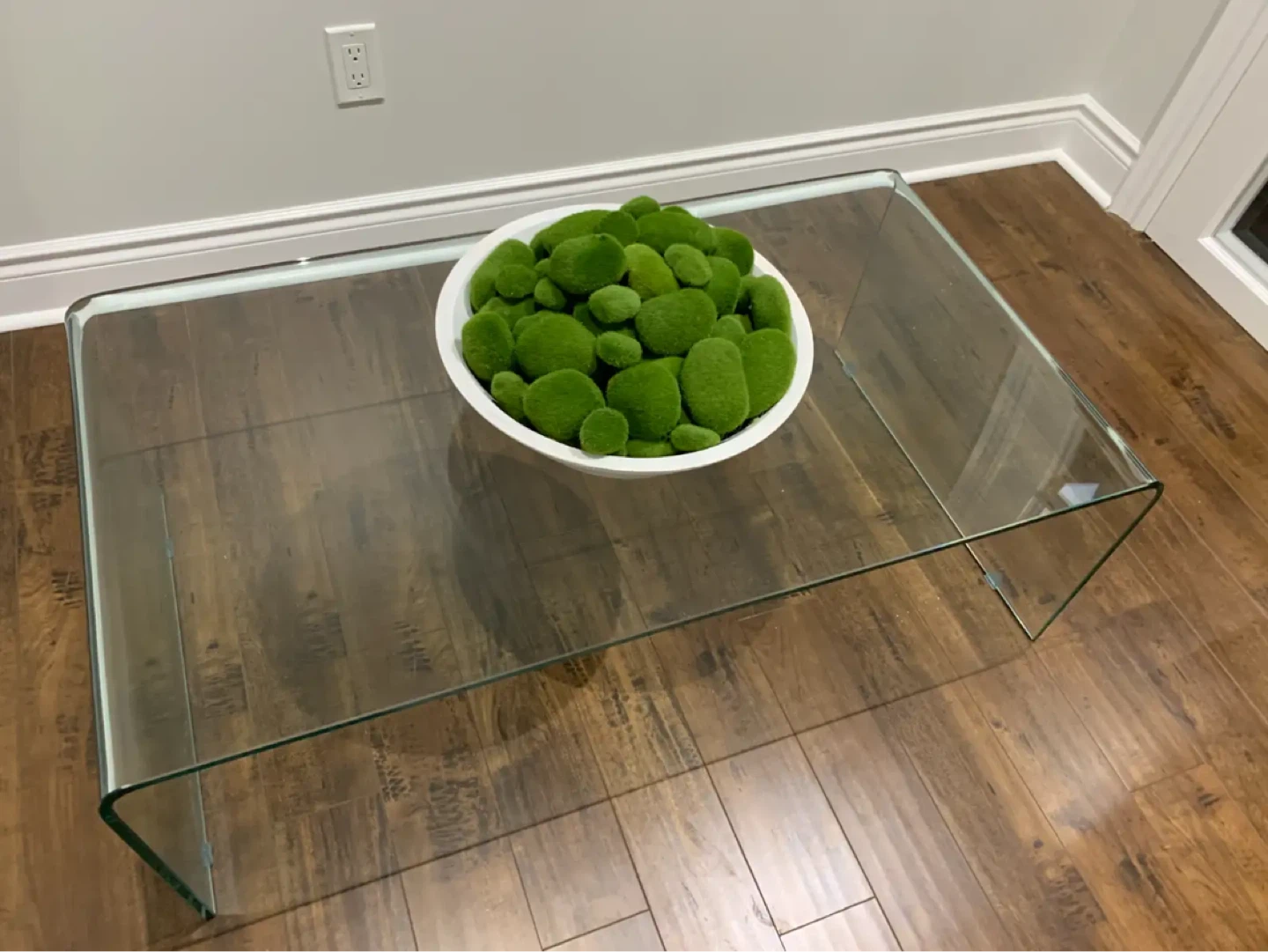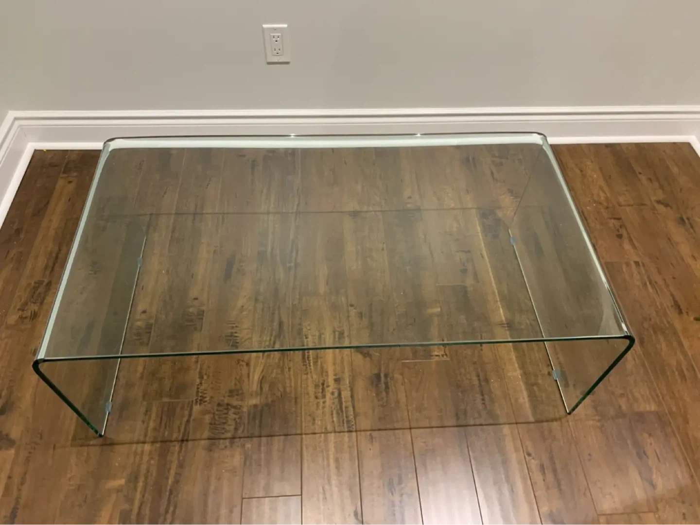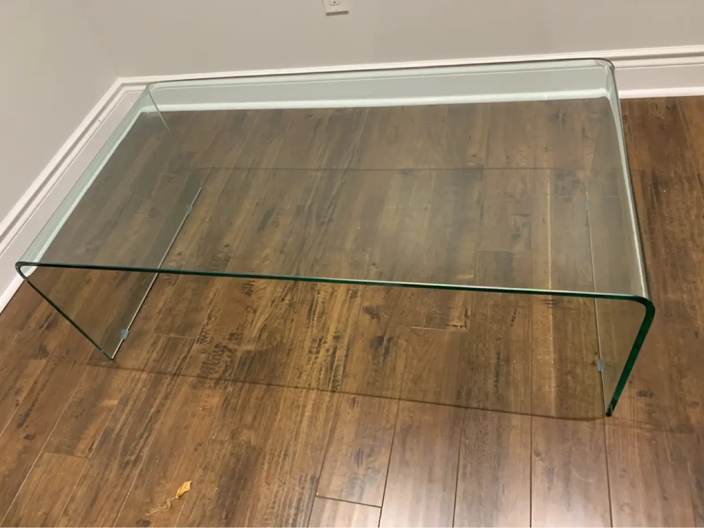 Curved glass coffee table. Modern, minimalist design. Clear tempered glass. Excellent condition
