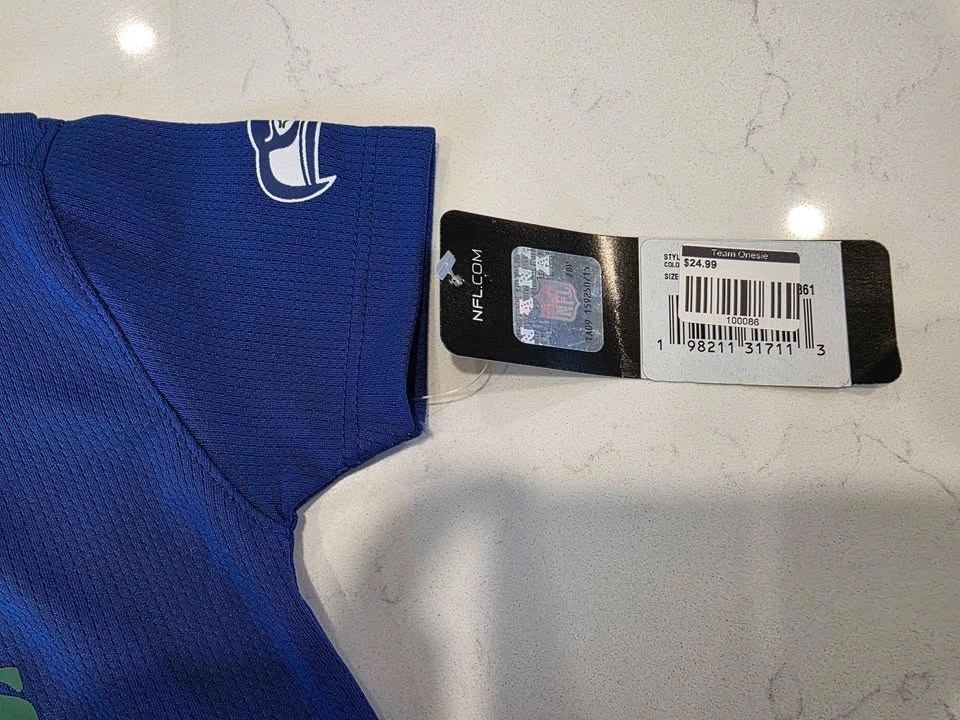 Brand new Seattle Seahawks baby onesie (18–24 months), never worn and still with tags. Official NFL licensed product. Retail price: $24.99 (shown on tag). Great for game days or as a gift for a Seahawks fan. Smoke-free, pet-free home. Pickup in Scarborough- Meadowvale and Ellesmere.