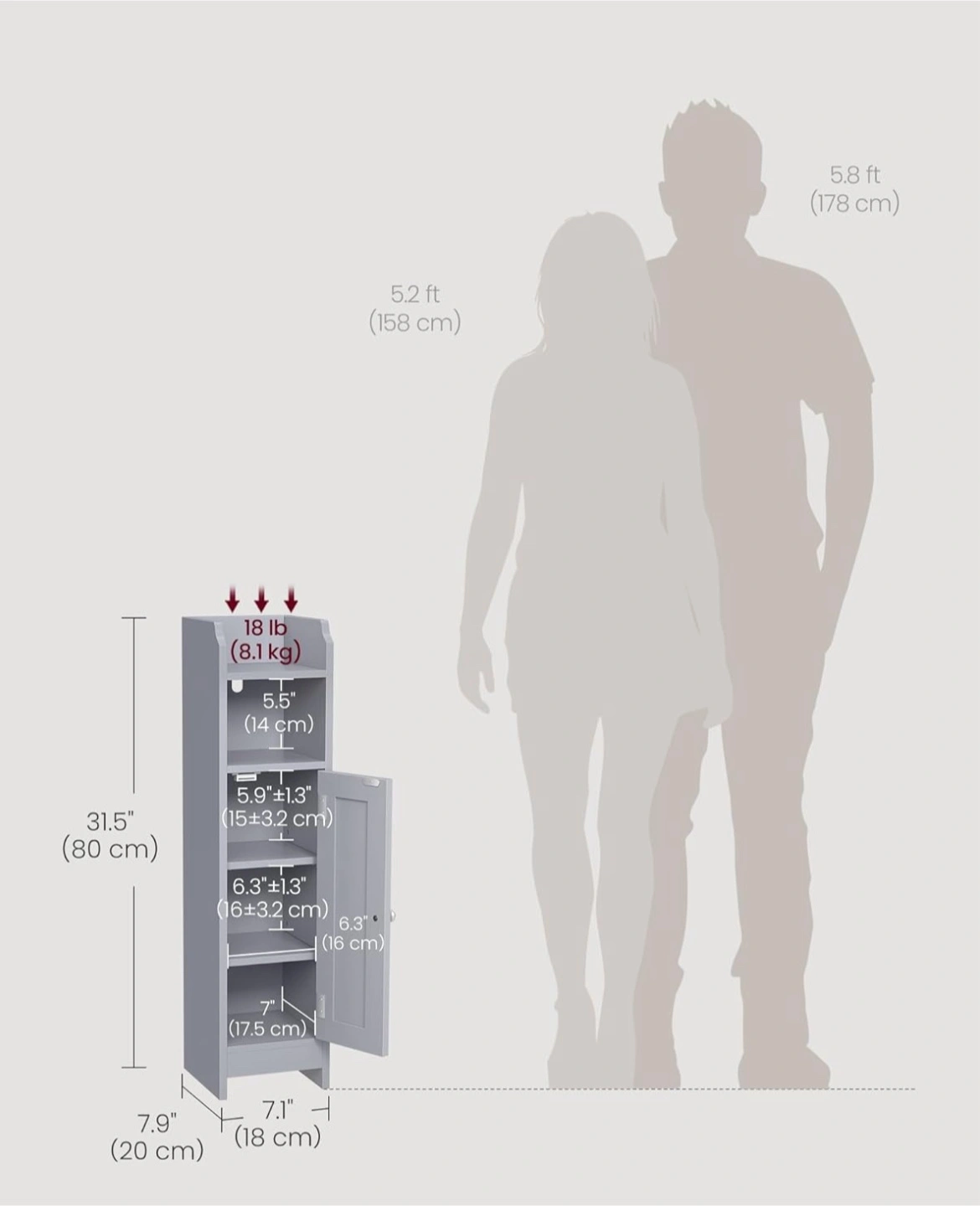 Dimensions: 7.9" x 7.1" x 31.5".