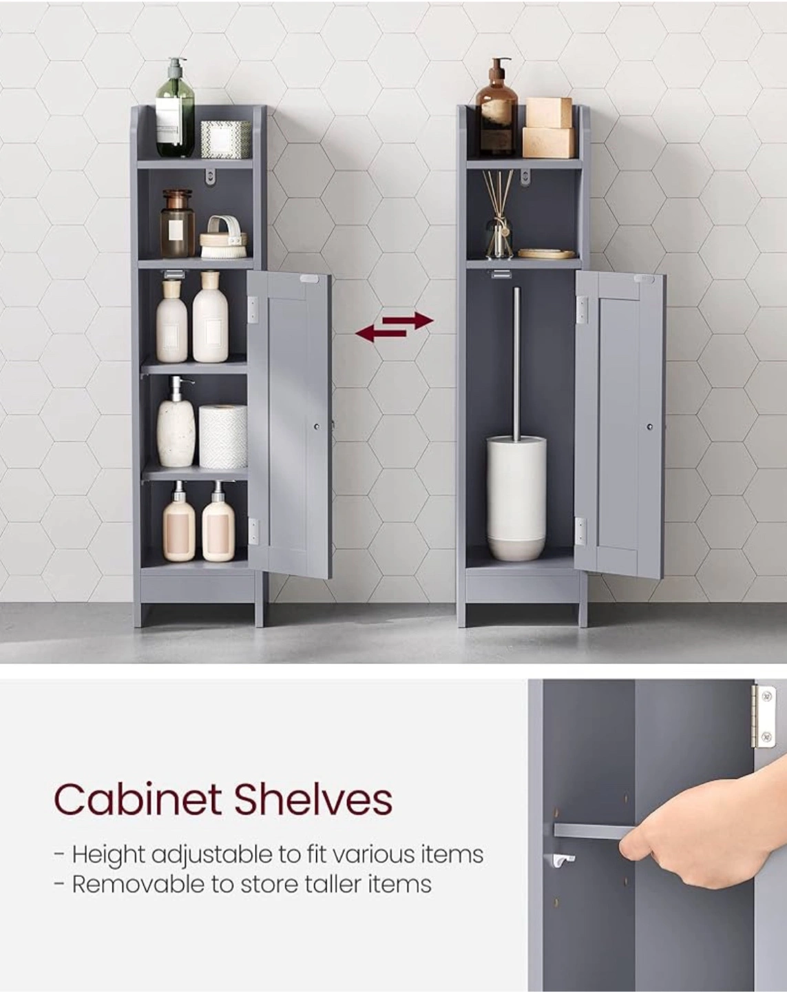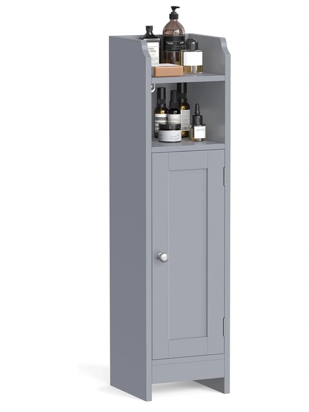 Selling a like-new VASAGLE bathroom cabinet! It's a slim cabinet perfect for adding some extra storage to your bathroom. The shelves inside are height adjustable or even removable to fit various items. It's grey and comes with the box!