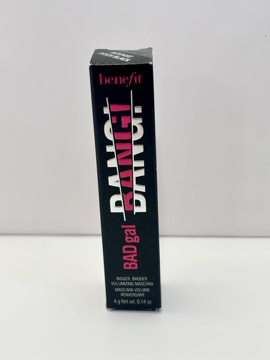 Benefit BADgal BANG! Bigger, Badder Volumizing Mascara in black. This mascara offers 36-hour full-blast massive volume without weighing down lashes! It is smudge-proof and water-resistant.
