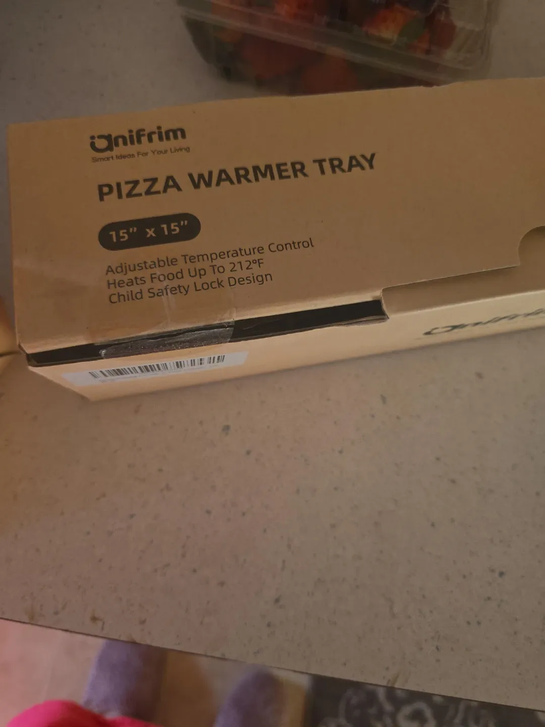 Unifrim pizza warmer tray, 15" x 15". Features adjustable temperature control, heating food up to 212°F. It also has a child safety lock design.