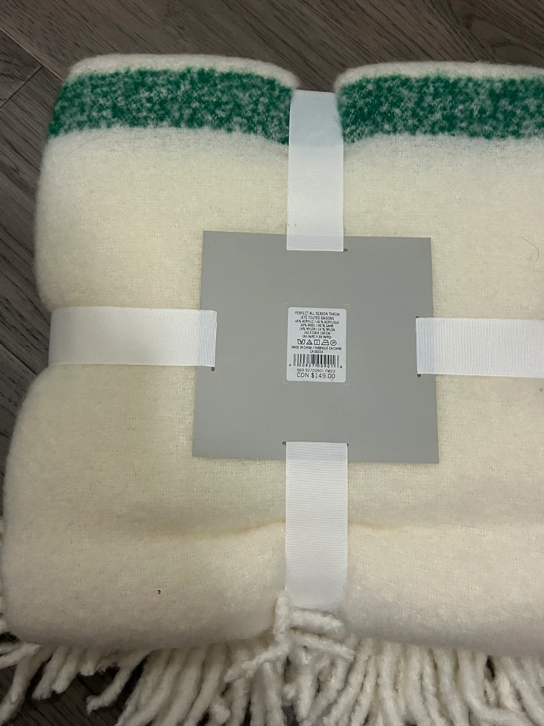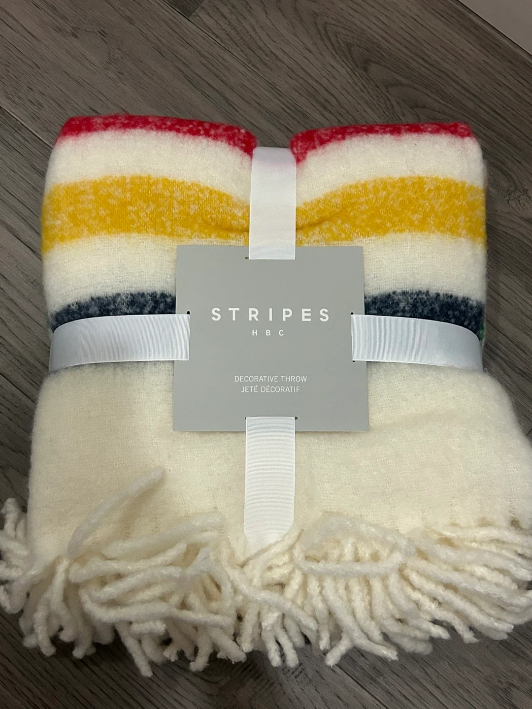 10Selling a brand new HBC Stripes decorative throw! It's a perfect all-season throw. Made of 85% acrylic and 15% wool. The style number is 0064245400. A cozy addition to any room