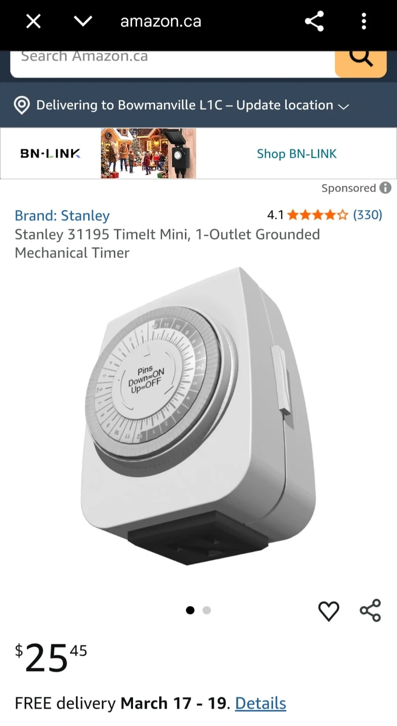 It programs repeats daily and can be set in 30-minute intervals. Easy to operate with push-in pins for ON and pull-up for OFF settings.