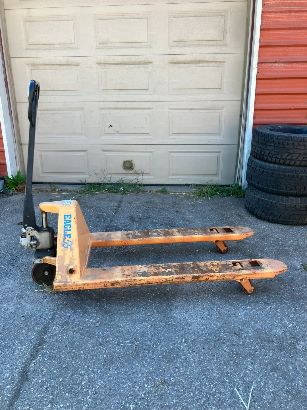 Selling a used Eagless 55 pallet jack. It has some signs of wear, but it's still functional and ready to use.
