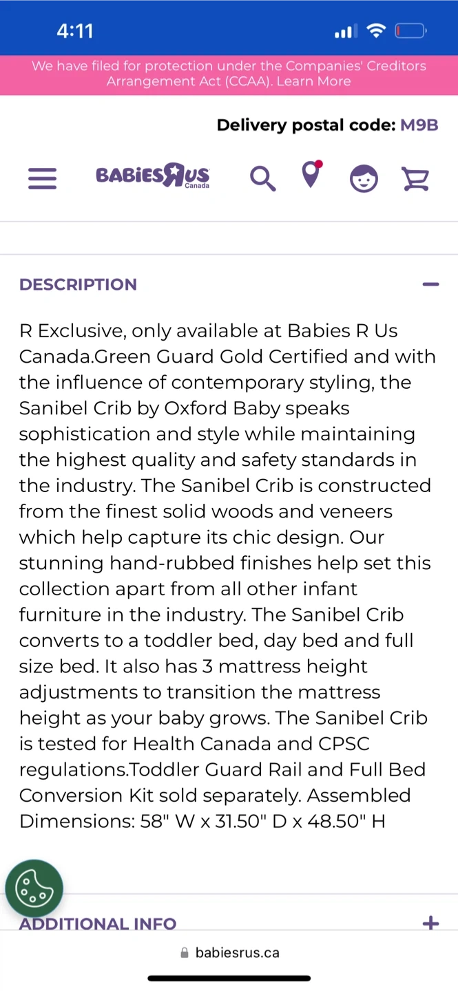 Oxford (Sanibel) 4 in 1 crib in very good condition. The Sanibel Crib converts to a toddler bed, day bed and full size bed (bed conversion kit included . It also has 3 mattress height adjustments to transition the mattress height as your baby grows.