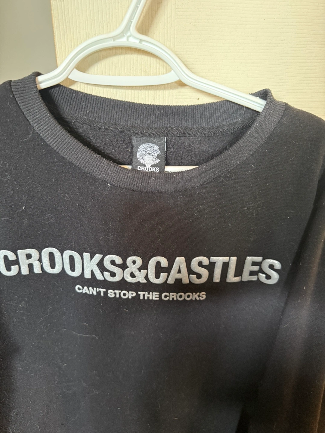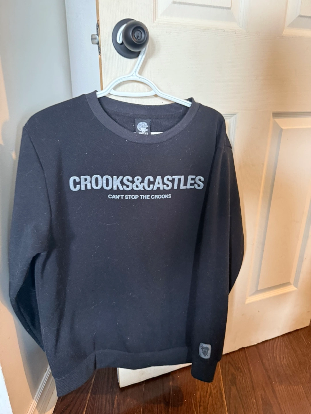 Selling a Crooks & Castles sweatshirt in black. It's a size L and features the "CAN'T STOP THE CROOKS" design. The material is soft and comfortable, perfect for everyday wear!