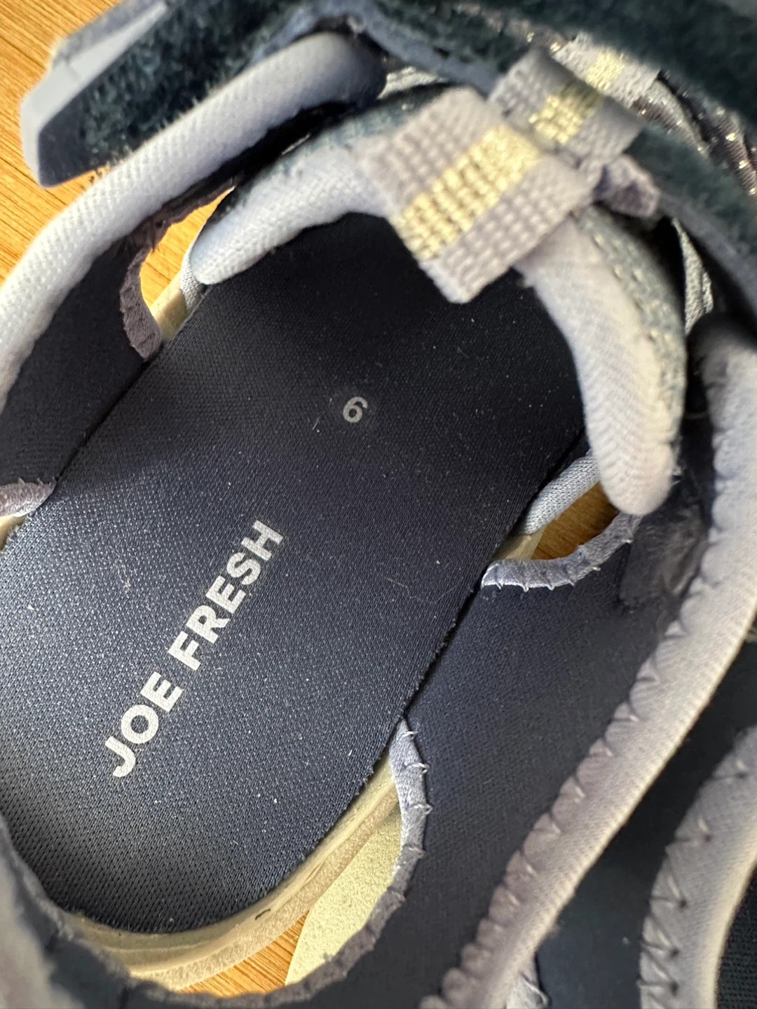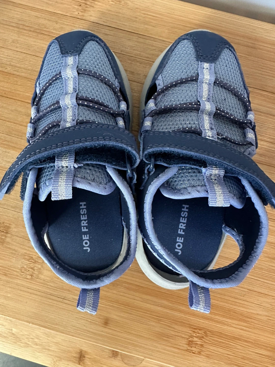 These Joe Fresh sandals are blue with hook-and-loop closures for an easy fit. They're a size 9 and designed for active kids. Great for summer adventures!
