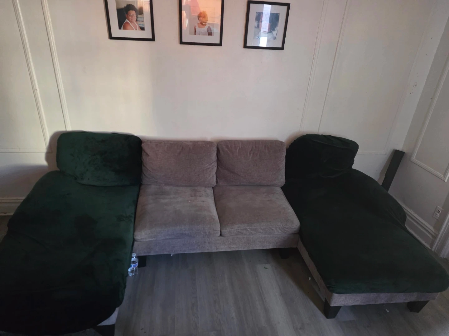 Small space U-shaped couch . The couch is not green that's just the couch cover which i have in beige as well