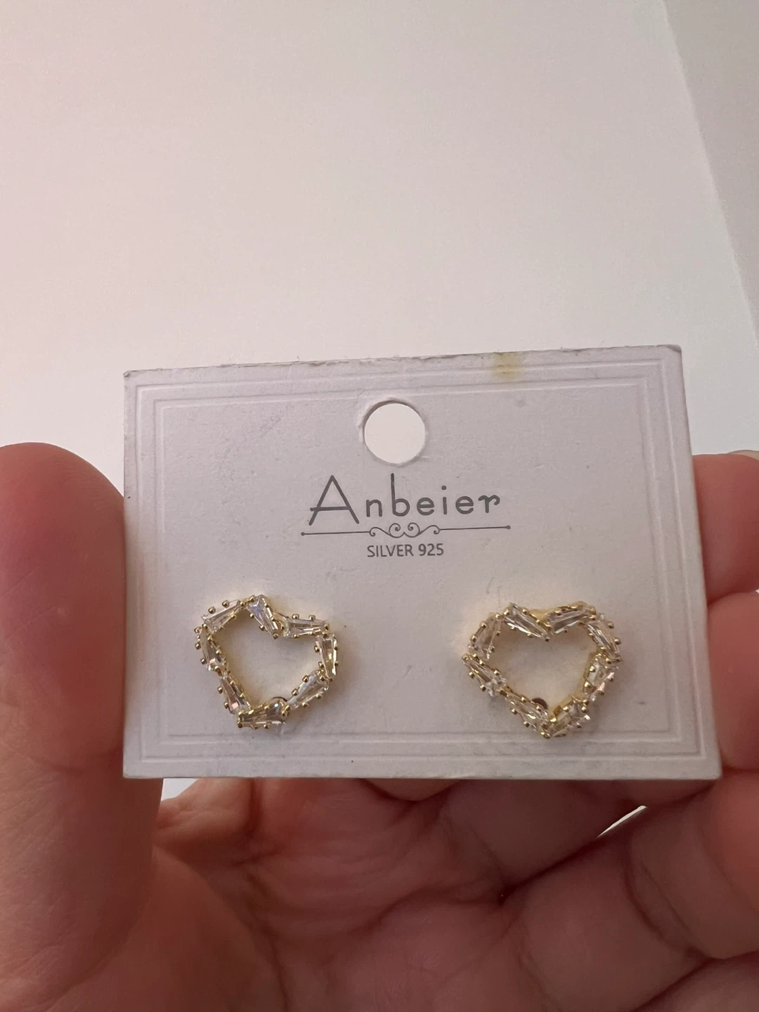 Anbeier heart-shaped earrings made with Silver 925 post. These earrings are embellished with clear stones for a touch of sparkle! They're a cute accessory for everyday wear.