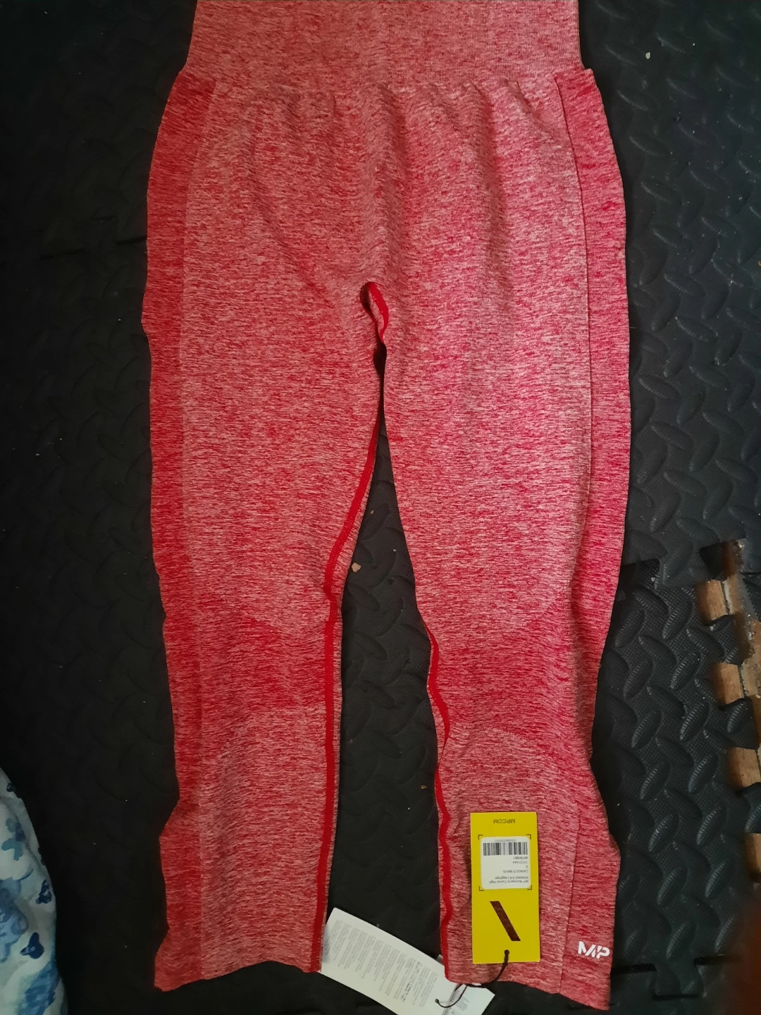 Seamless MP gym leggings in a red heather colour. These leggings are designed for comfort and performance during workouts. They're made with a stretchy, breathable fabric that moves with you.