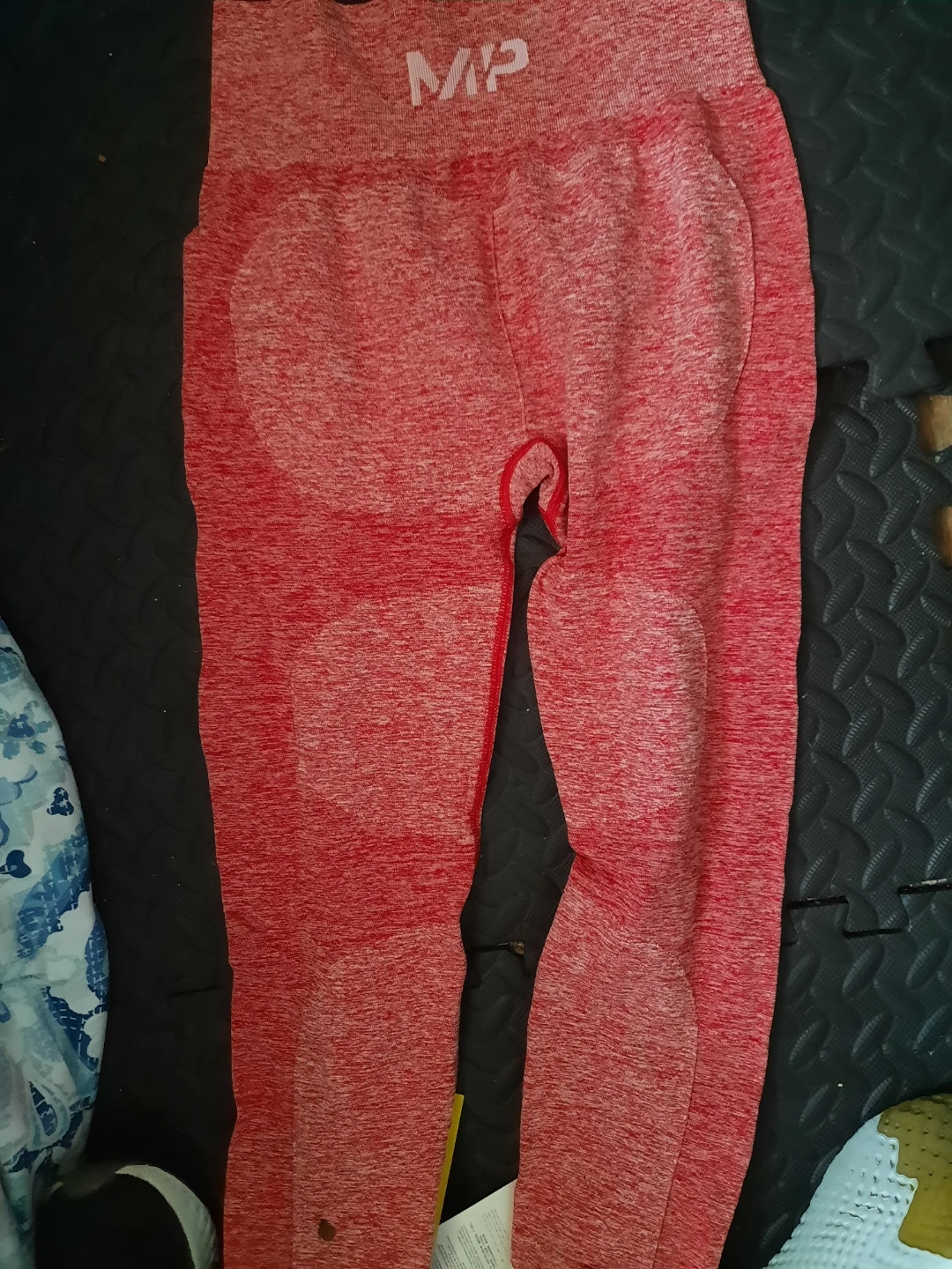 Seamless MP gym leggings in a red heather colour. These leggings are designed for comfort and performance during workouts. They're made with a stretchy, breathable fabric that moves with you.