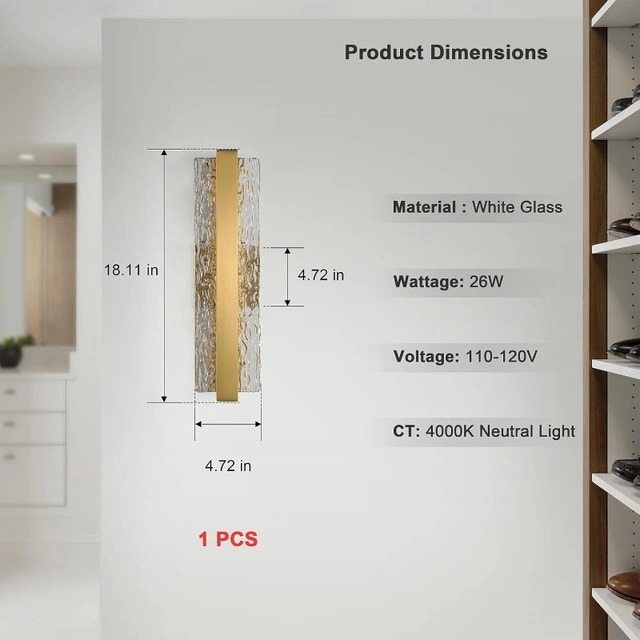 NEW Indoor Wall Sconce 18” 4000K Stepless Dimming, Ripple Effect